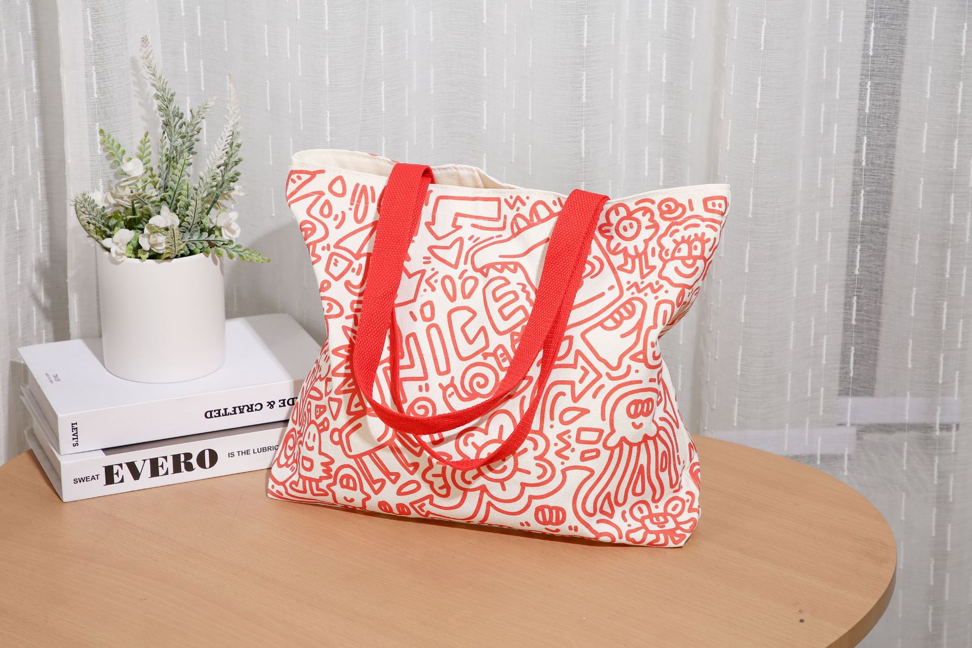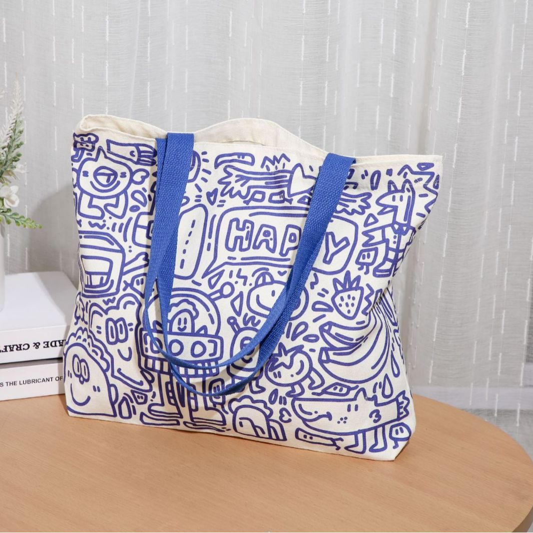 新款原创托特包大容量学生帆布包布袋学生涂鸦休闲购物袋休闲 English | 投诉