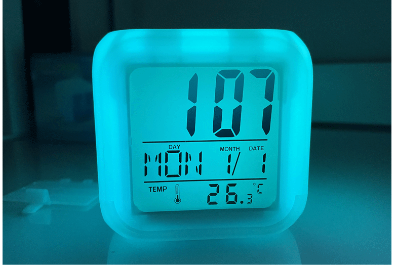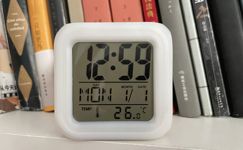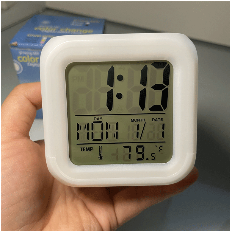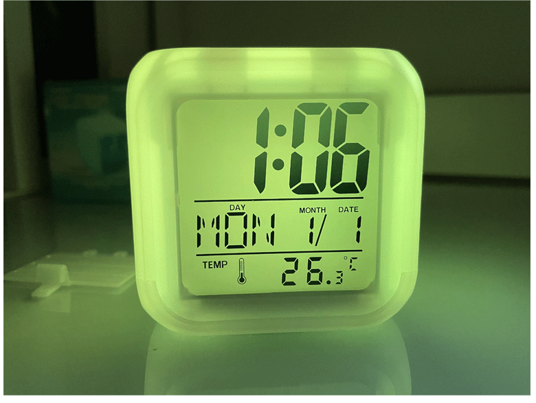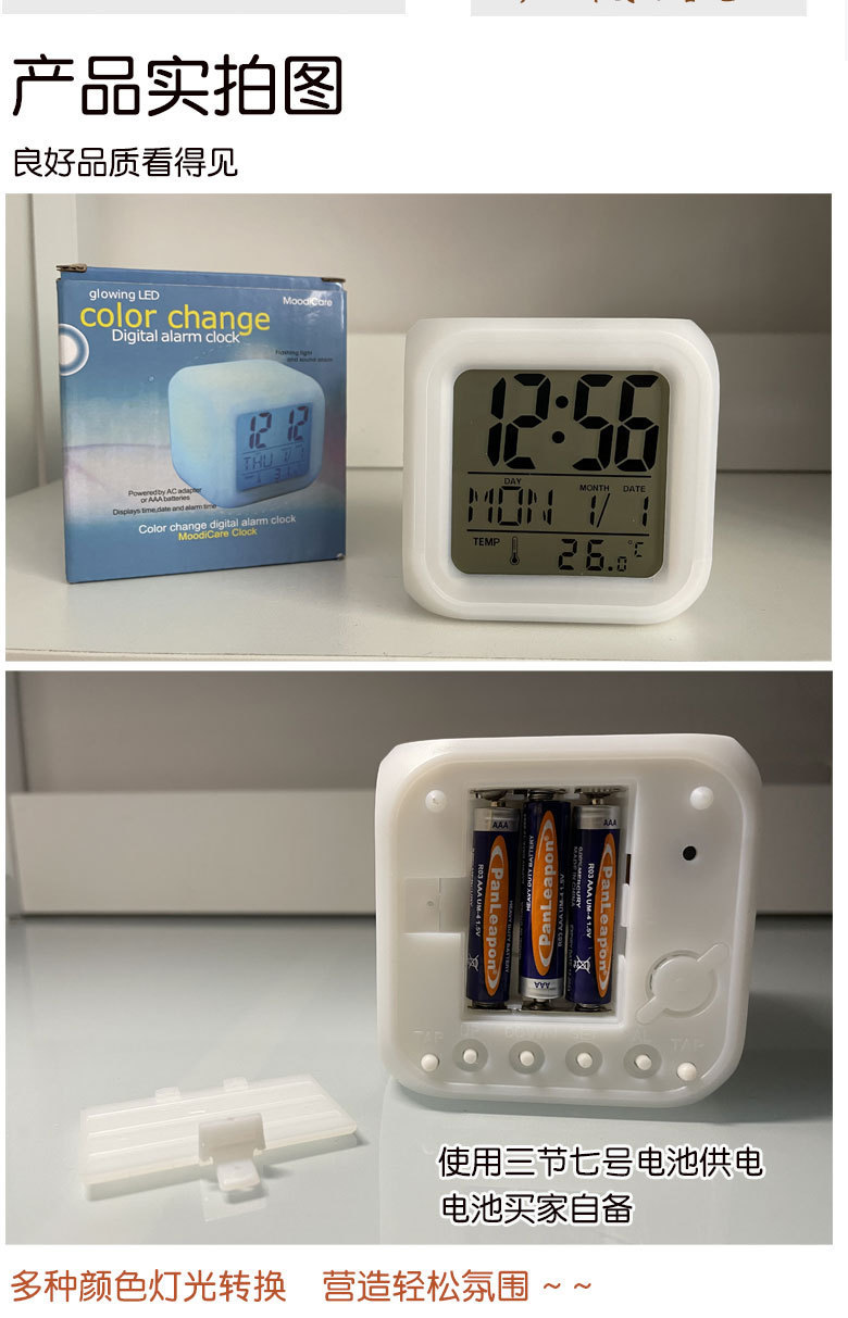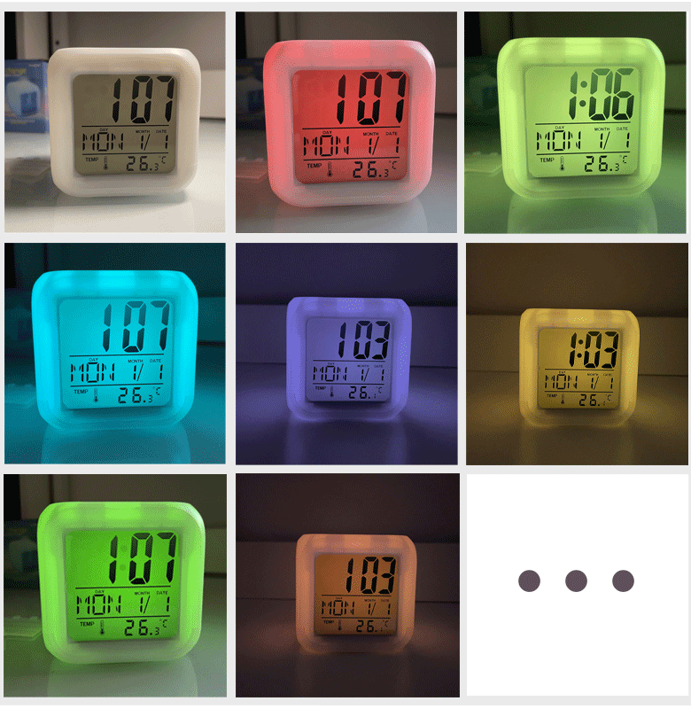 白屏七彩钟 创意DIY懒人静音夜光贪睡闹钟七彩变色LED四方钟礼品