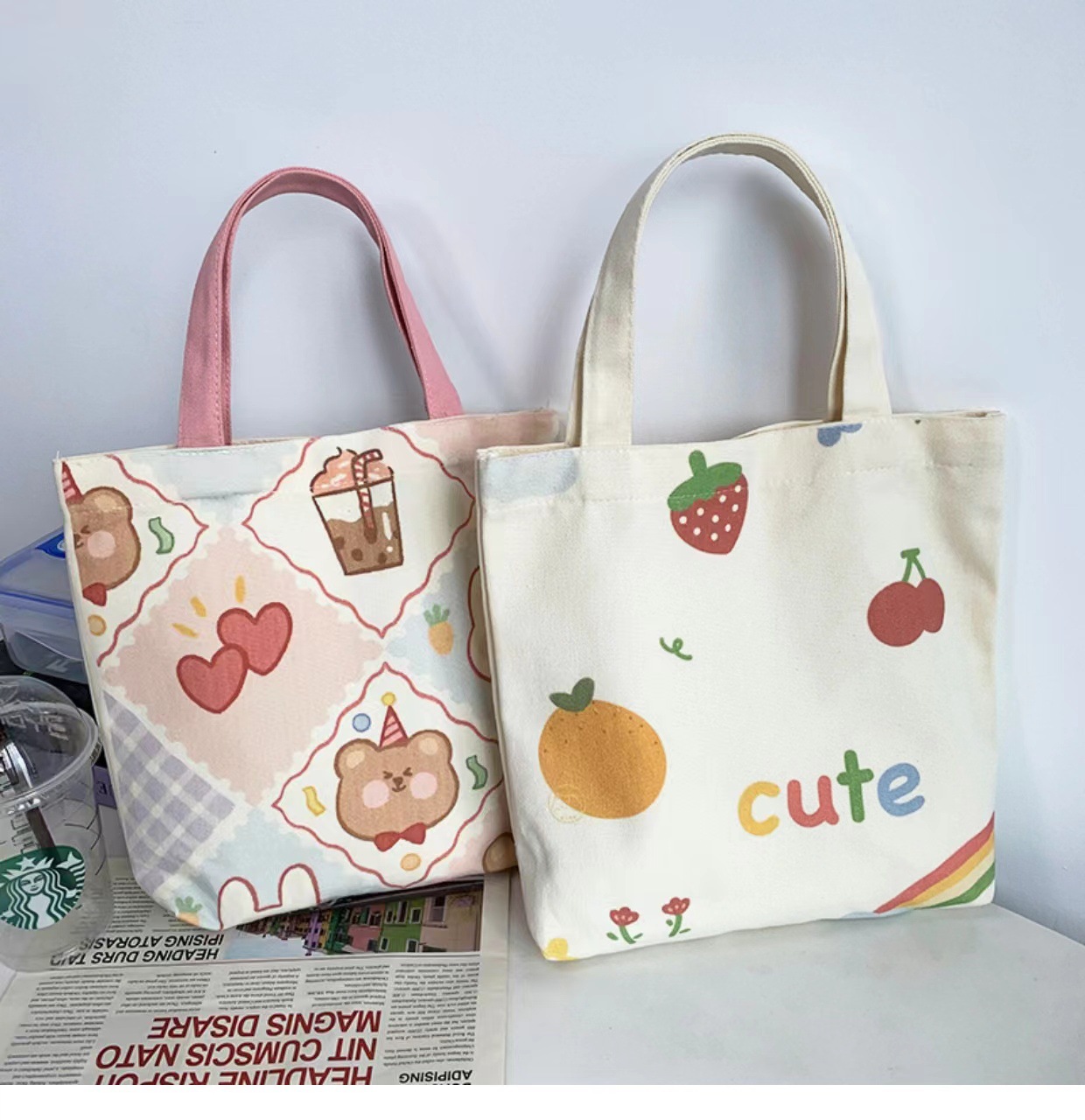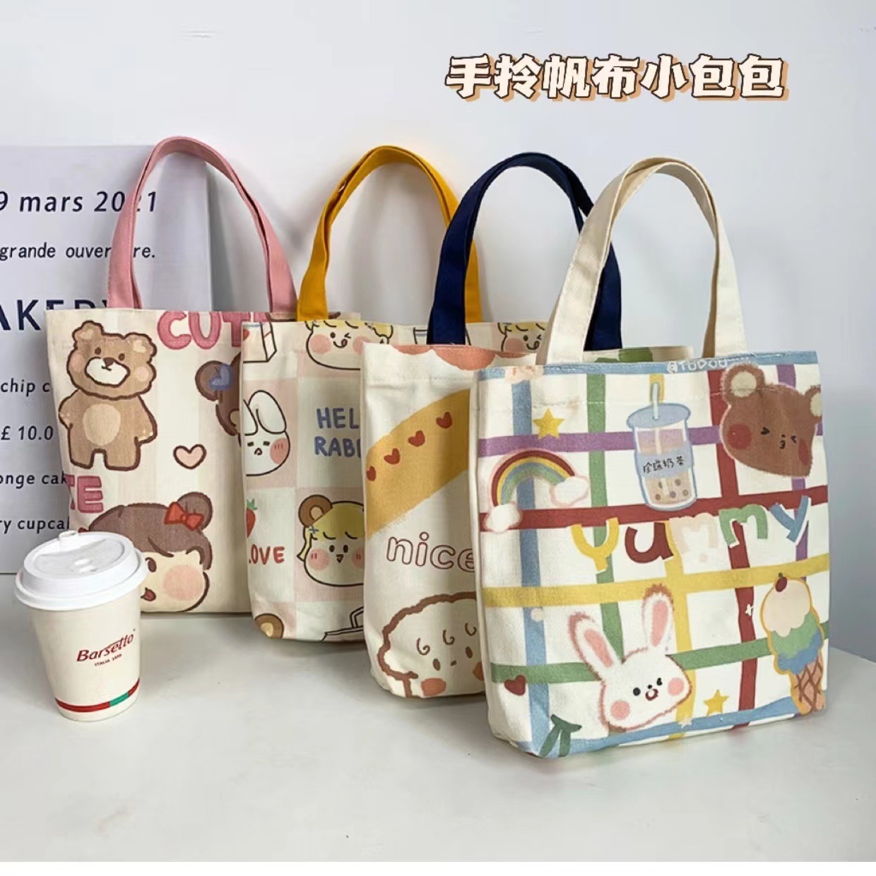 新款可爱卡通日系帆布包补习便当包小号手提包袋女包手拎包 English | 投诉