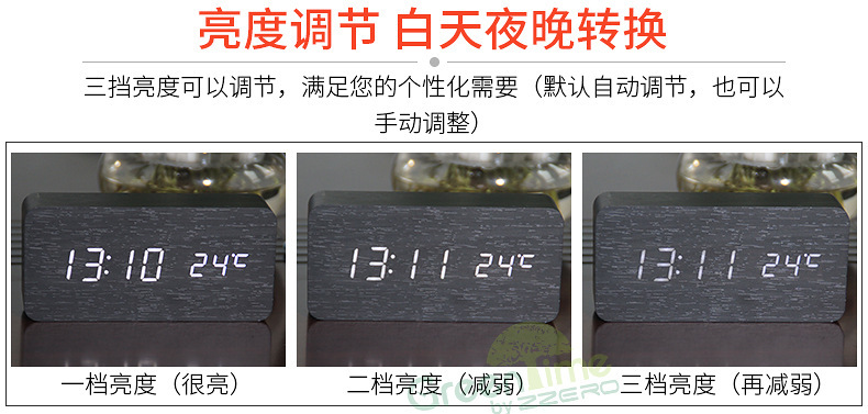 ◆12/24小时制 ◆摄氏度/华氏度 ◆三档亮度调节