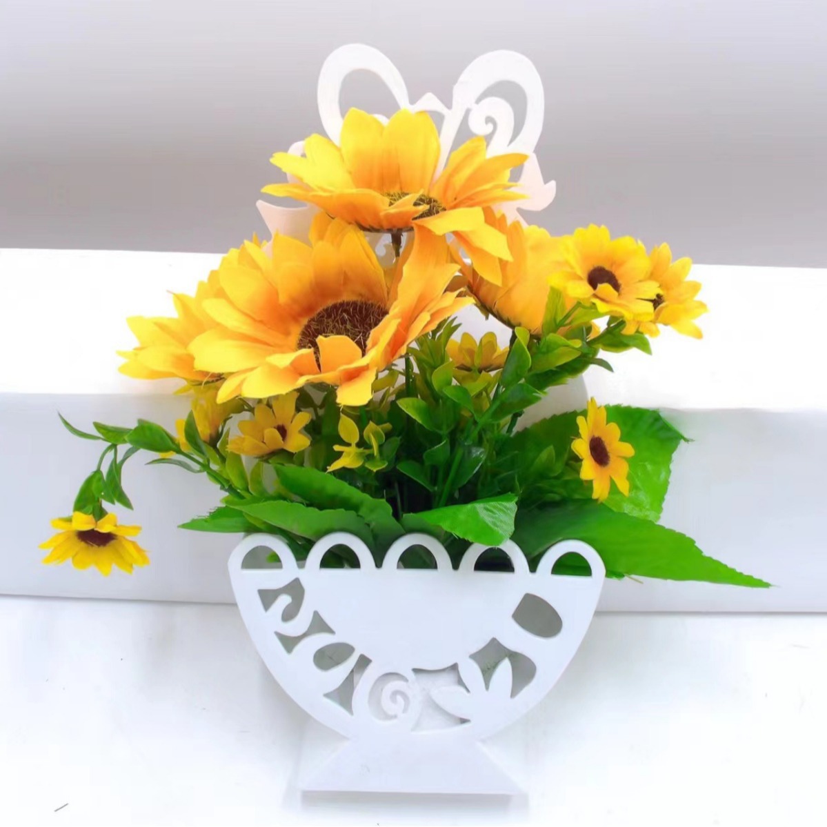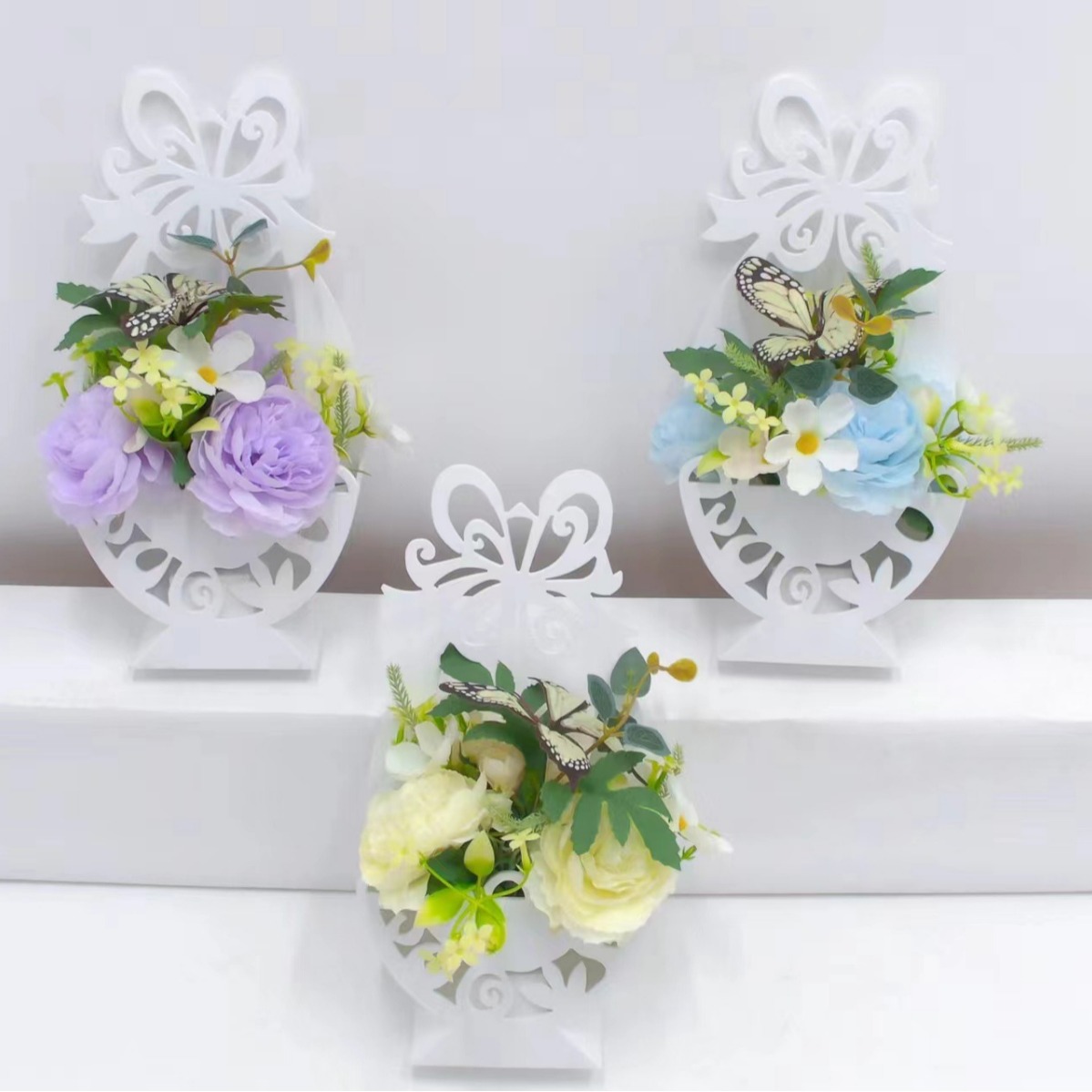 仿真假花壁挂花墙壁装饰花套装假花植物客厅室内塑料壁挂盆景跨境