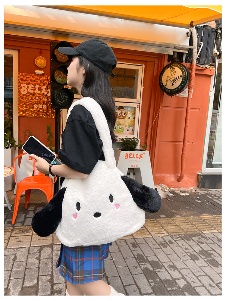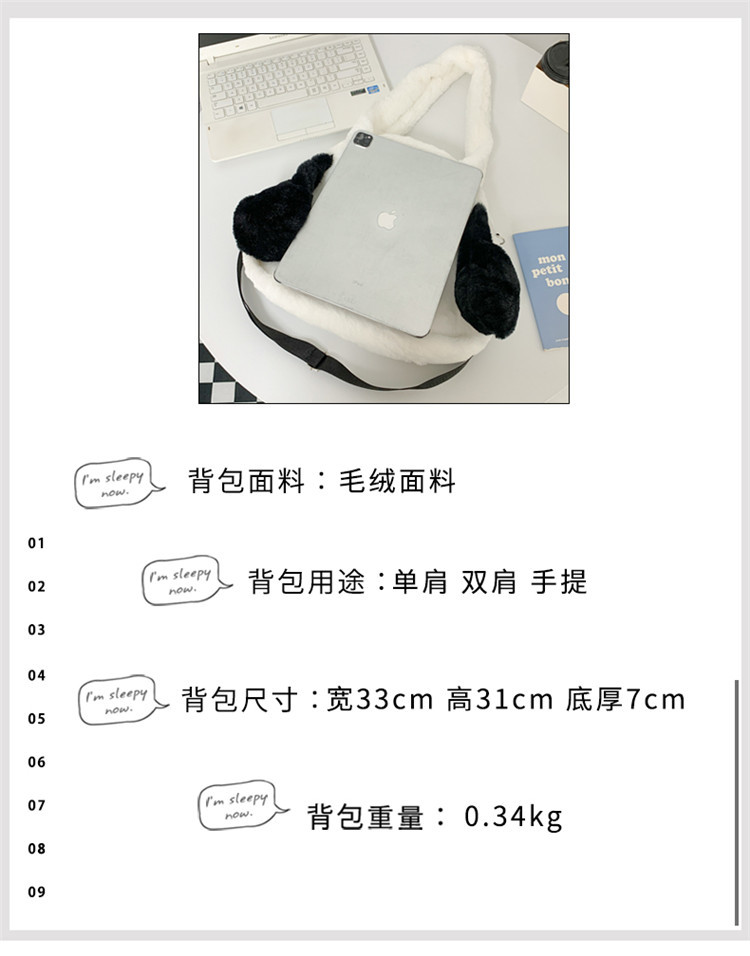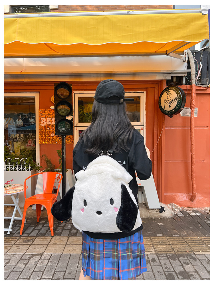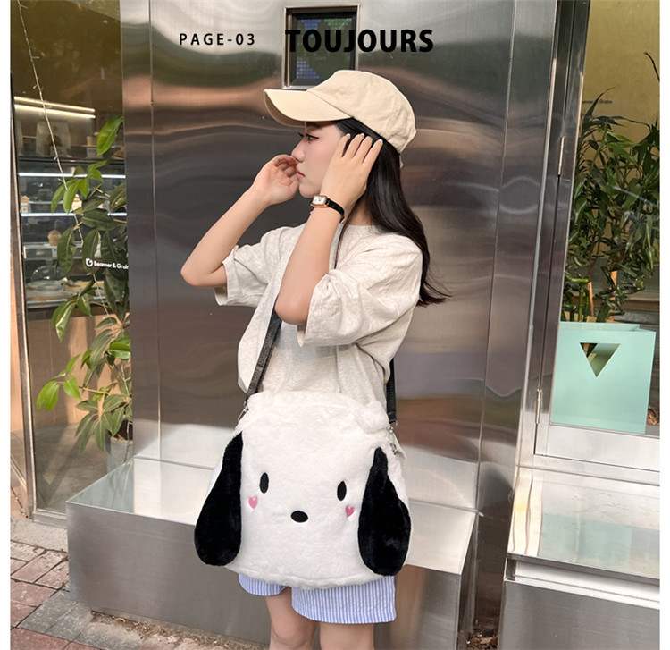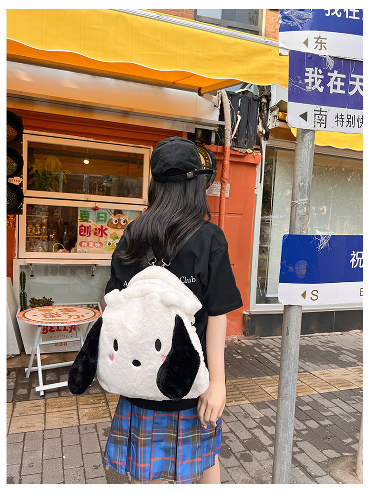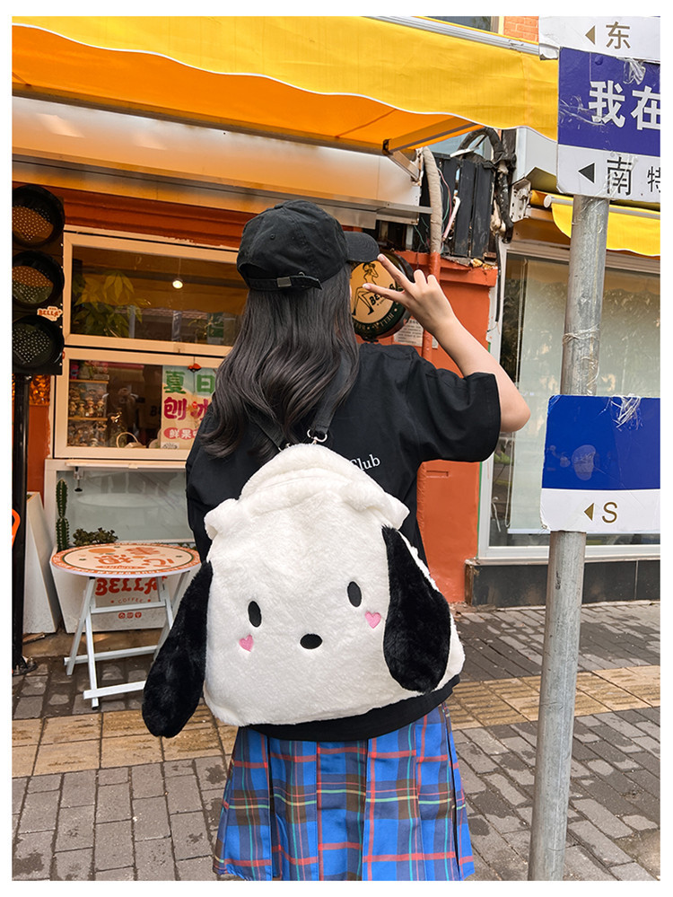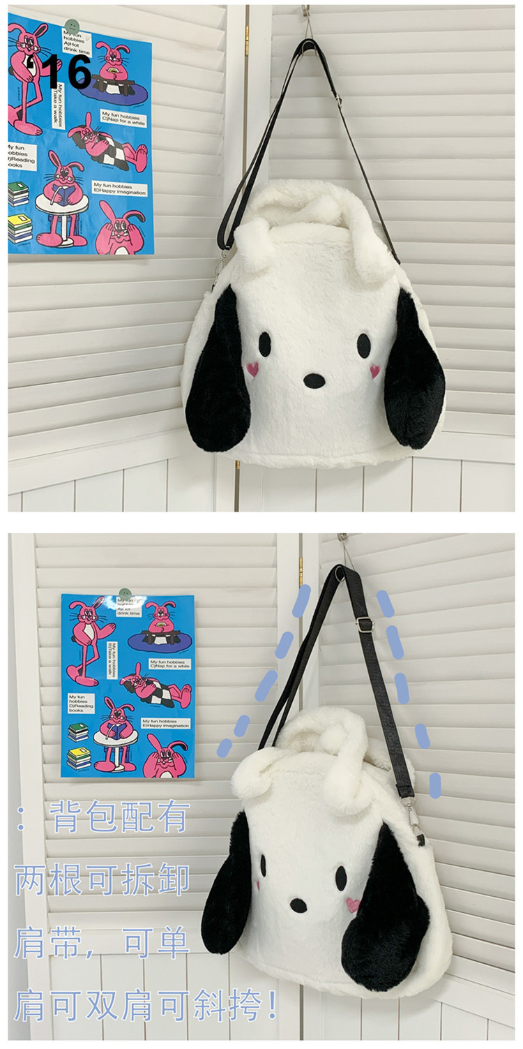日系ins可爱小狗学生手提斜挎双肩毛绒包包大容量日常学生上课包 English | 投诉