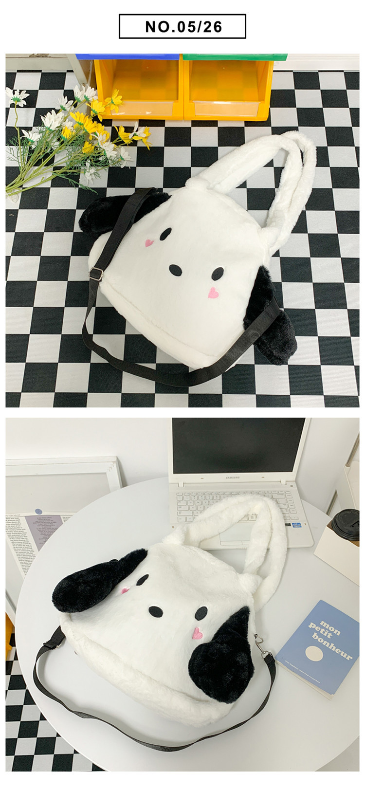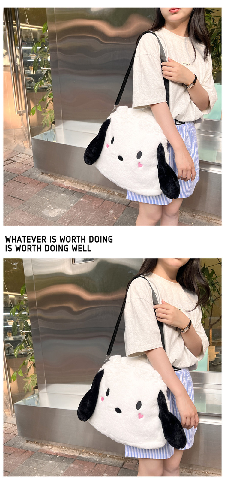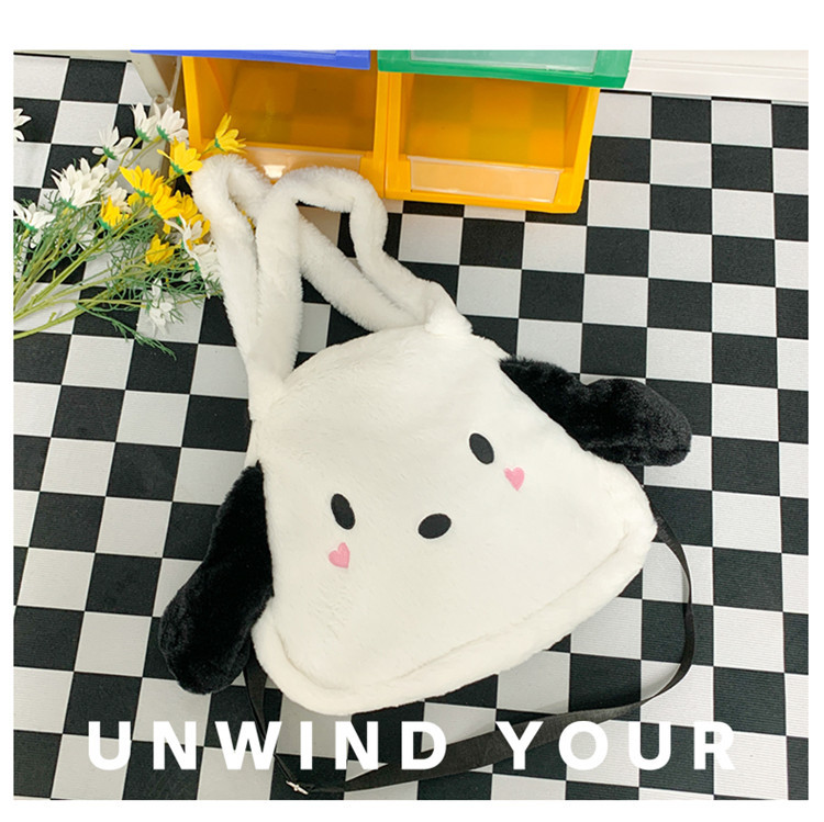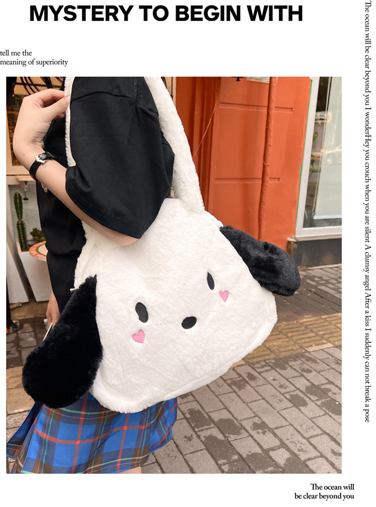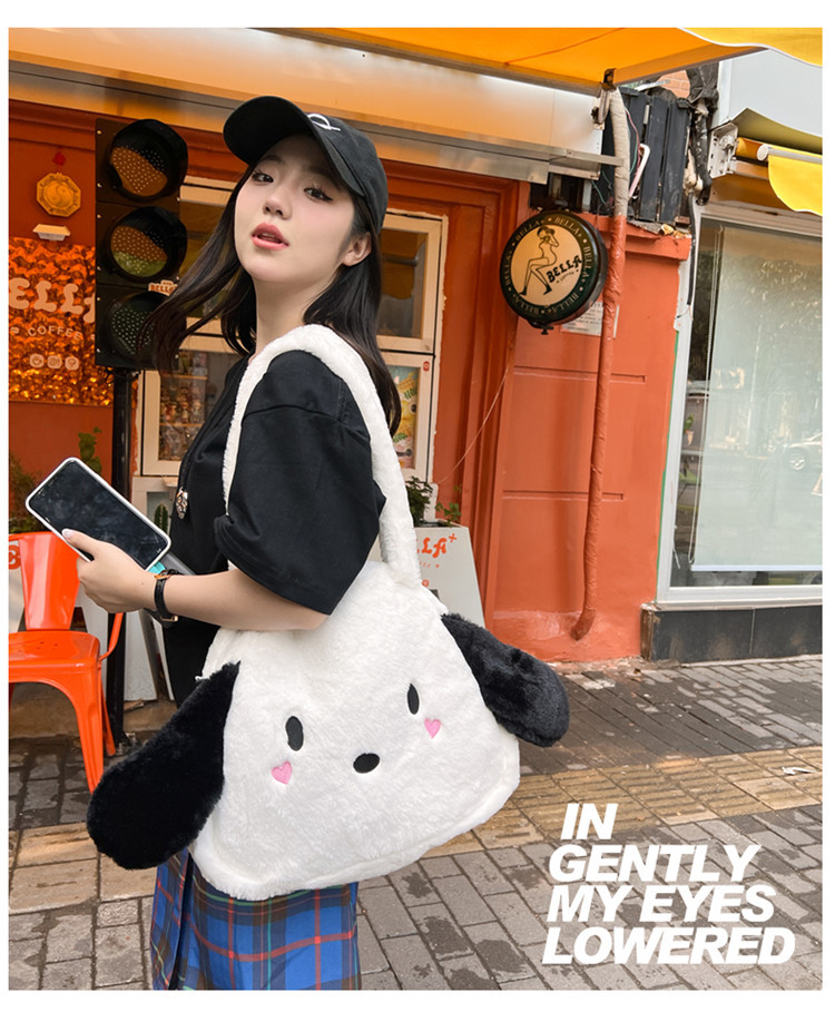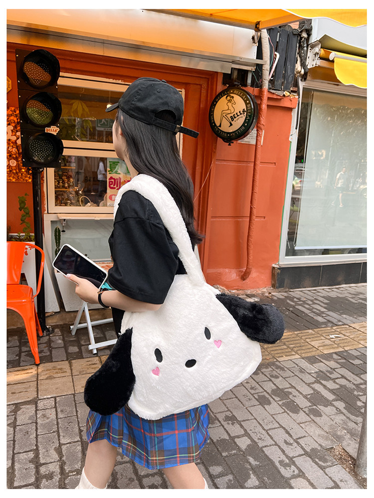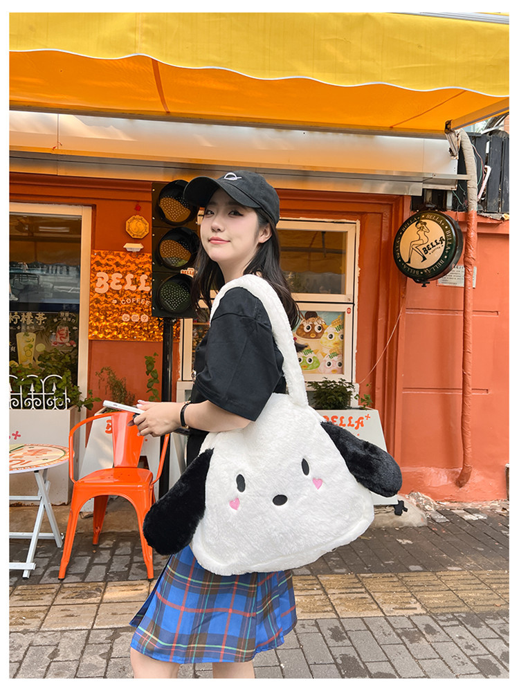 日系ins可爱小狗学生手提斜挎双肩毛绒包包大容量日常学生上课包 English | 投诉