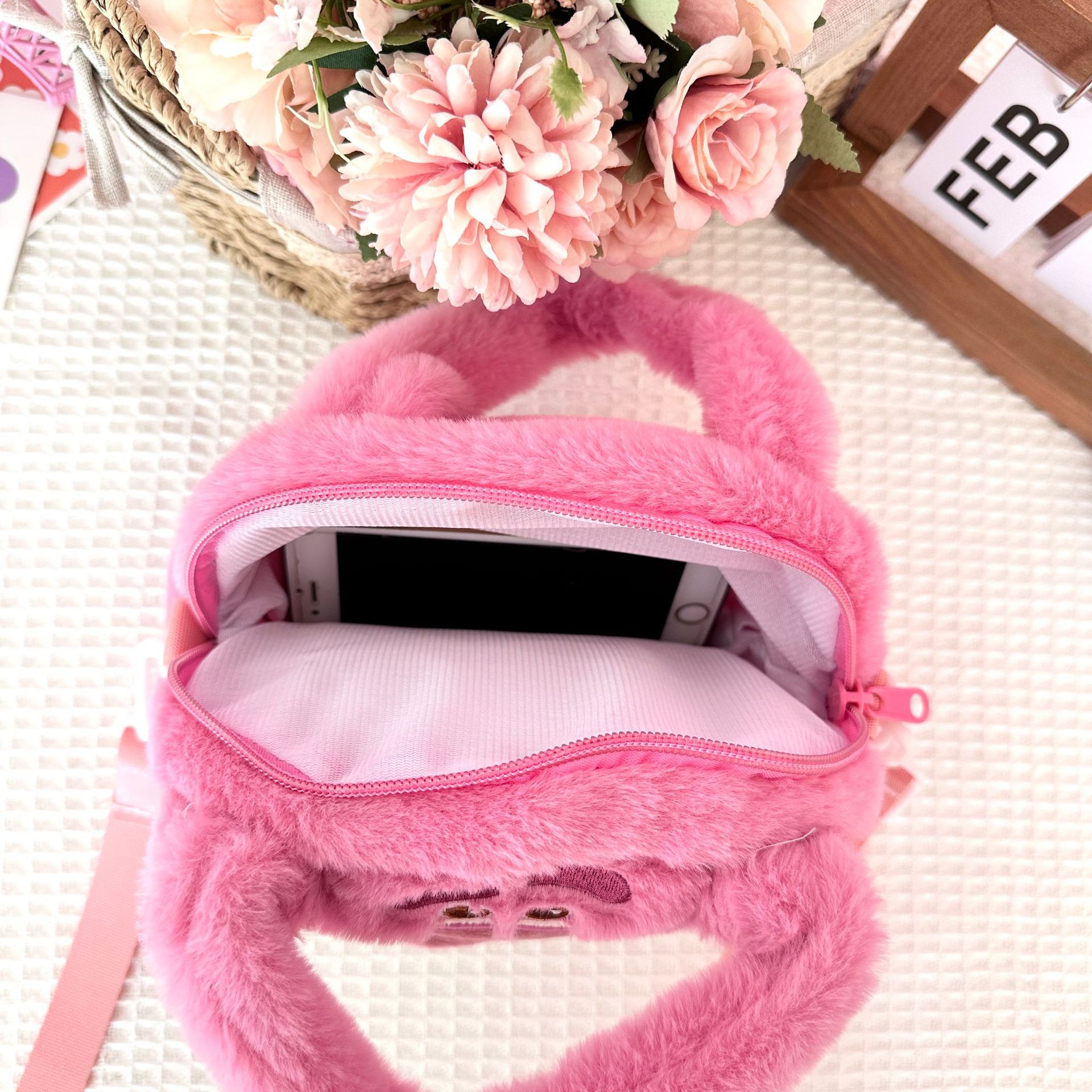 毛绒儿童可爱卡通小包包日系JK女孩手提收纳包大耳狗毛绒斜跨小包 English | 投诉