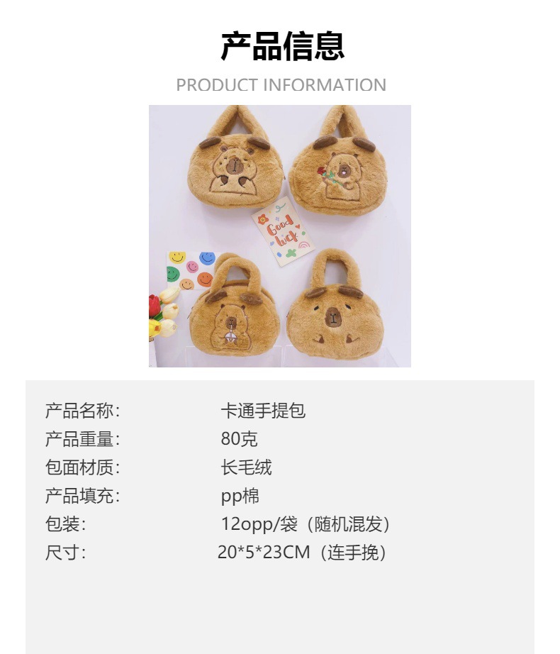 卡皮巴拉水豚君毛绒包可爱卡通小水豚公仔包儿童抓机娃娃包 English | 投诉
