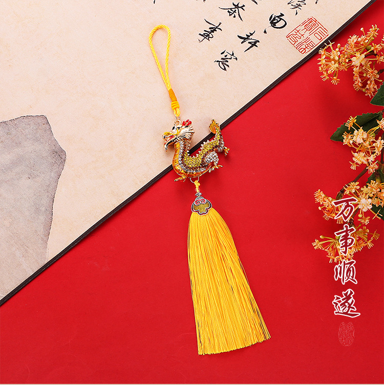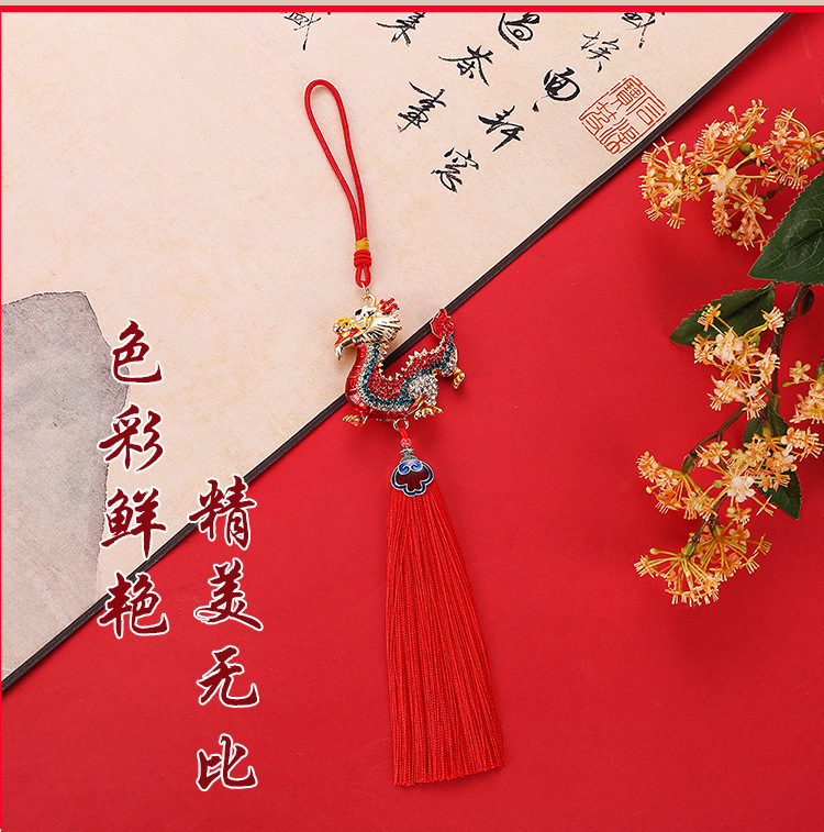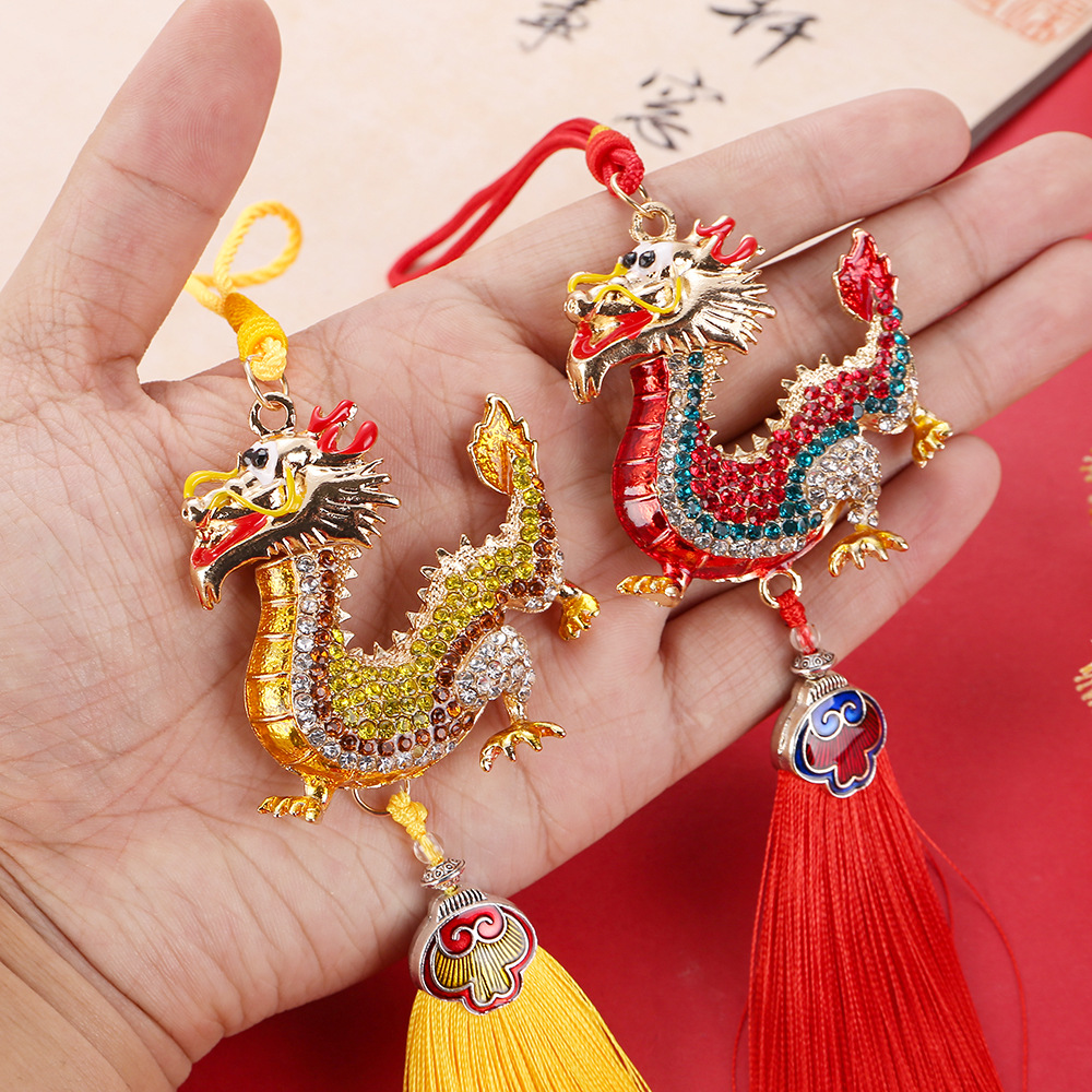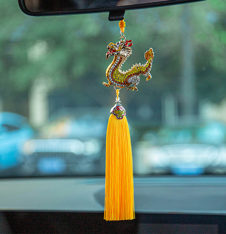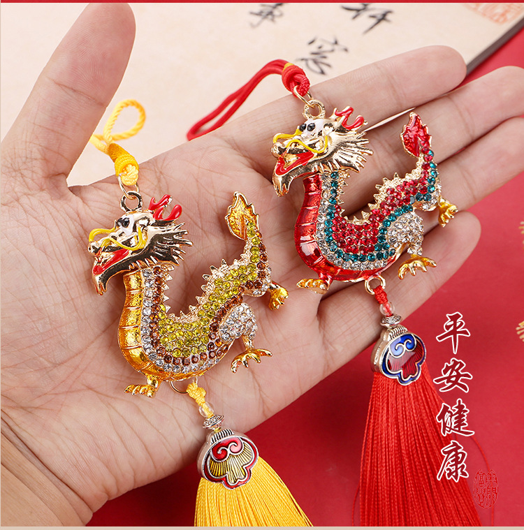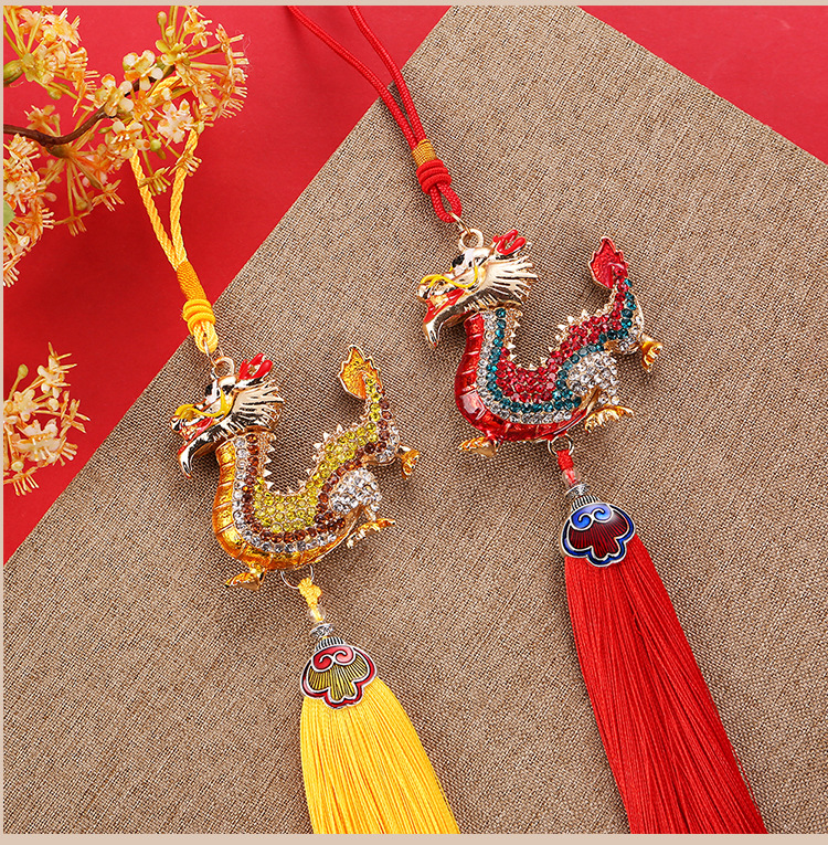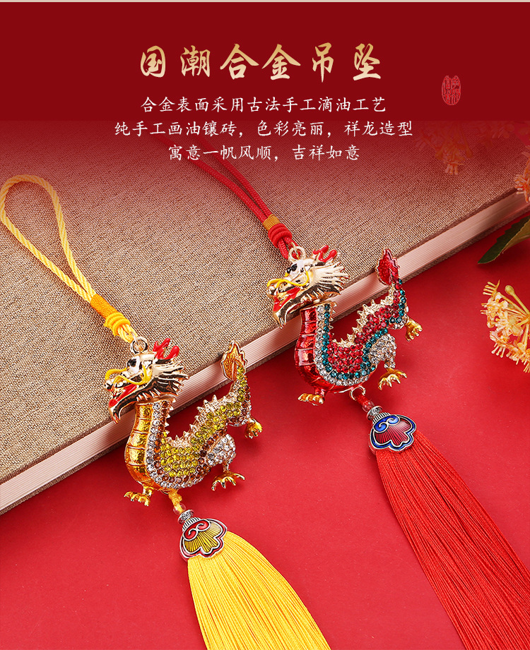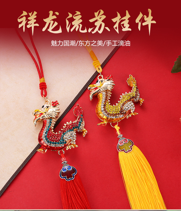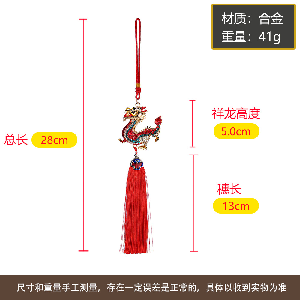 龙年合金流苏镶钻中华龙汽车挂件男立体生肖龙吊坠国风后视镜挂饰