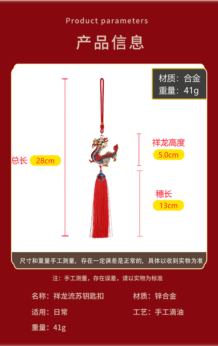 龙年合金流苏镶钻中华龙汽车挂件男立体生肖龙吊坠国风后视镜挂饰 投诉