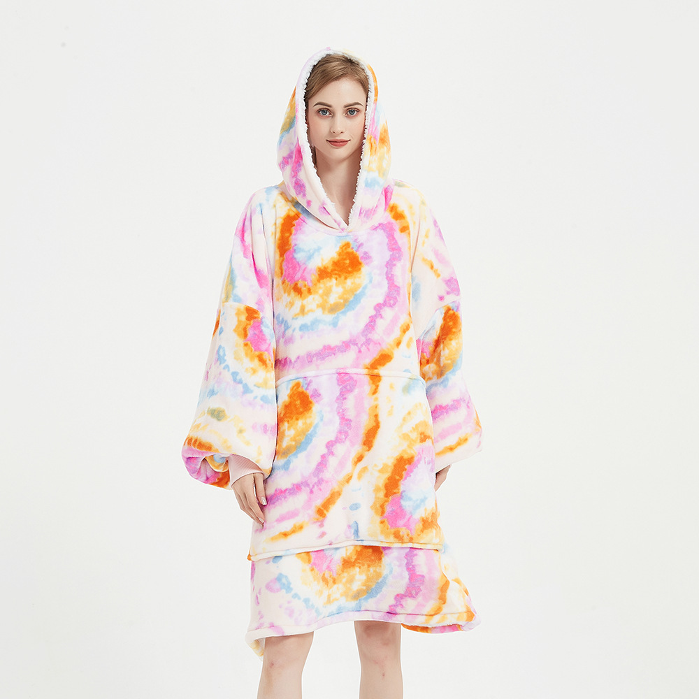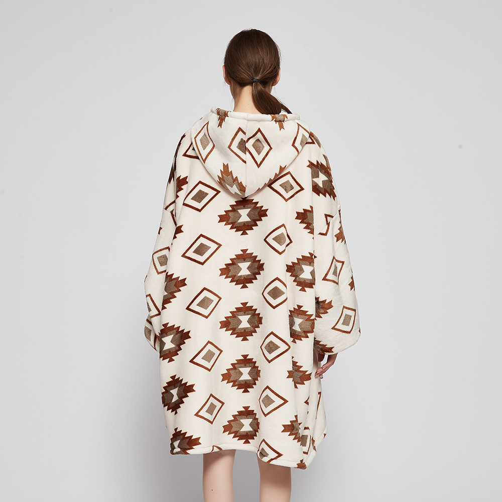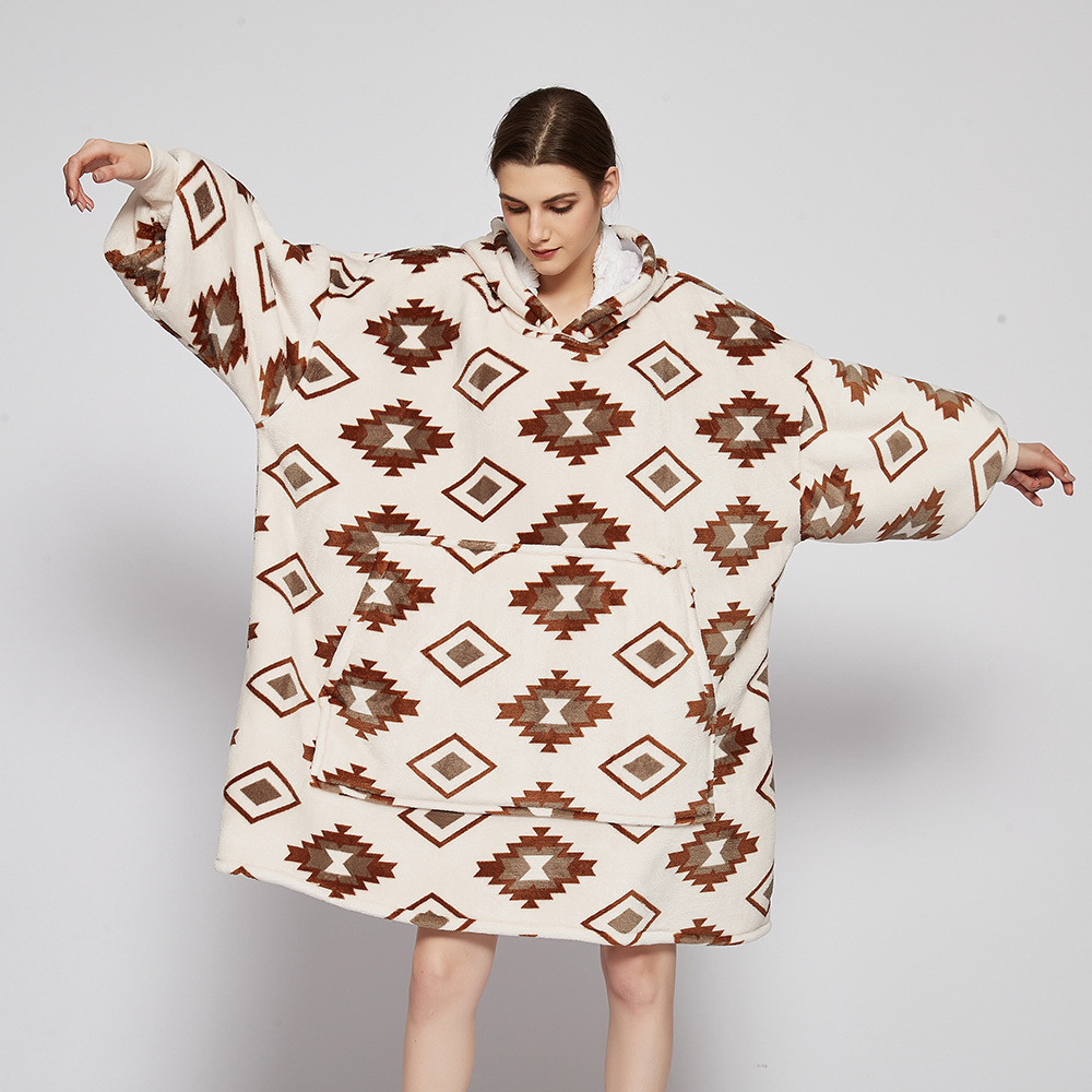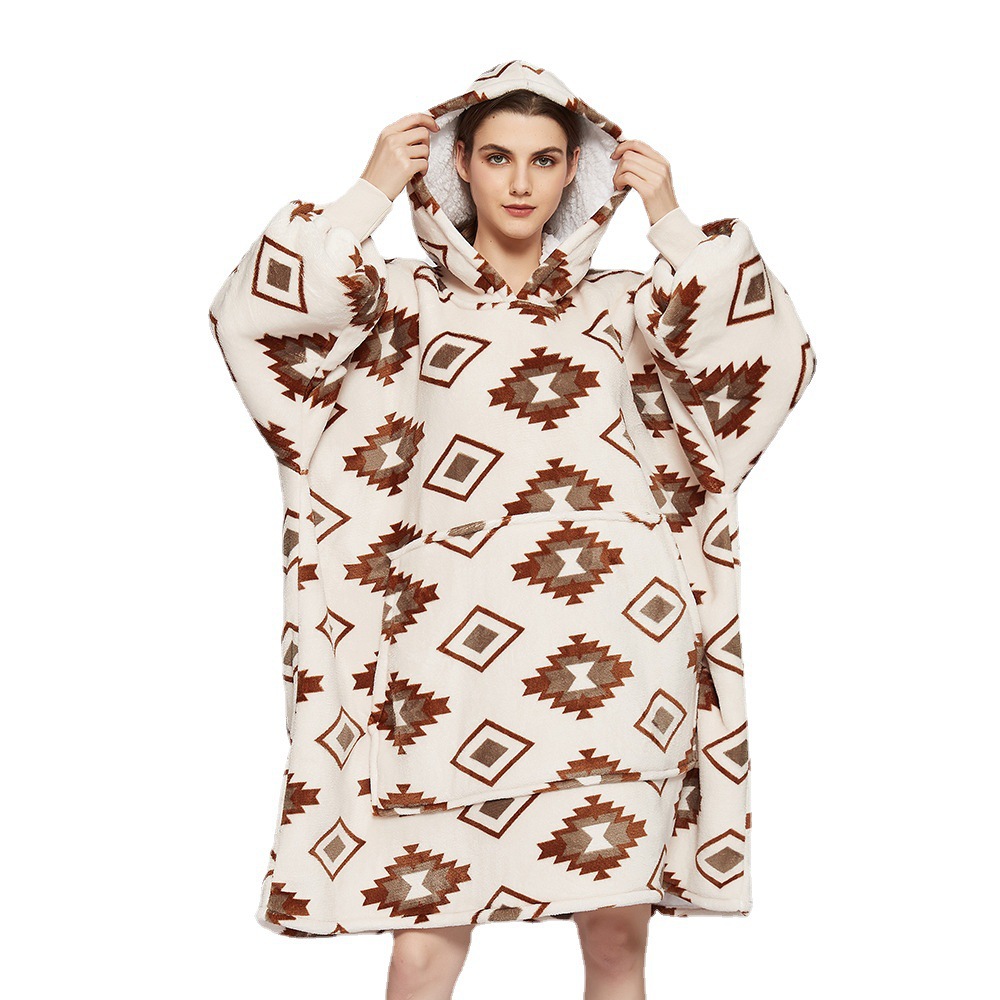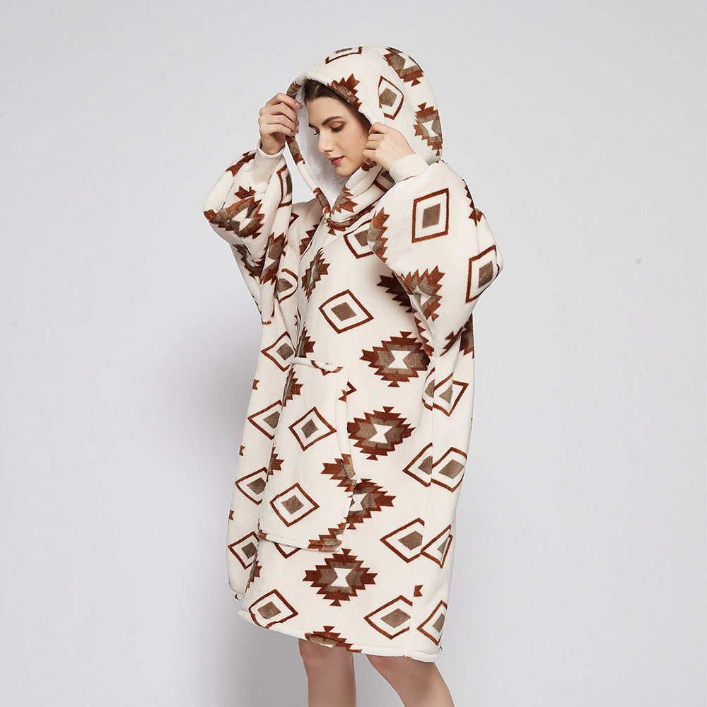 跨境圣诞睡衣睡袍女法兰绒牛油果面包印花懒人毯家居服TV电视毯