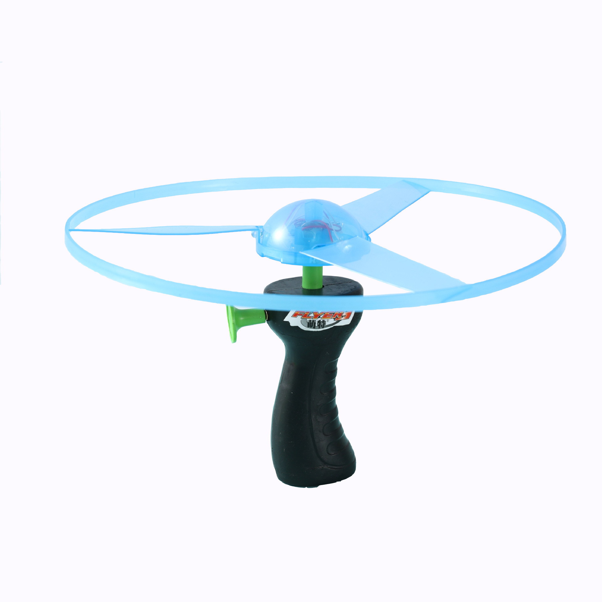 2,对接好手柄和飞碟,放平握紧用力拉线,靠的就是旋转速度升降。