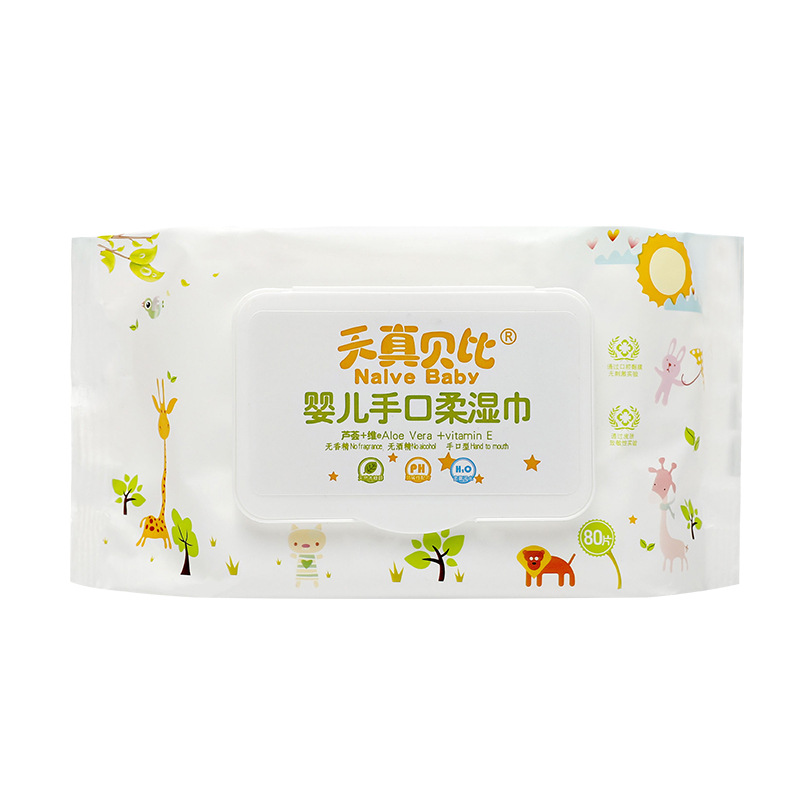 天真贝比811湿巾婴儿80片水刺无纺布手口用清洁便携带盖湿巾批发 English | 投诉