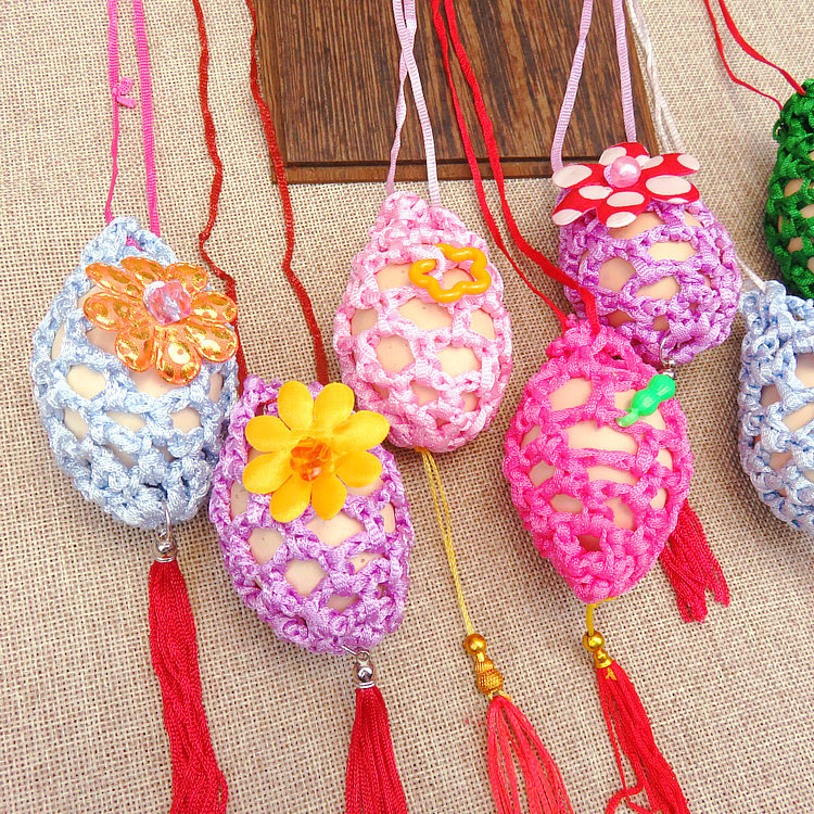 小孩挂脖鸡蛋网端午节礼品幼儿园立夏蛋袋成品花朵蛋兜儿童鸭蛋套 投诉