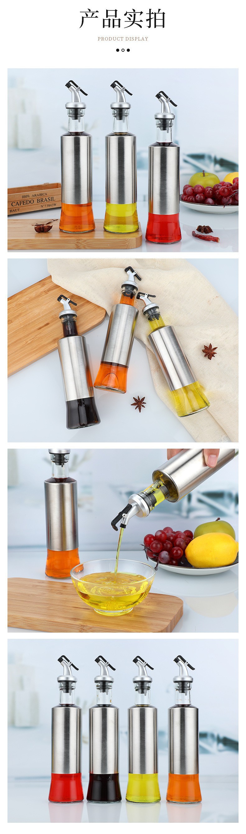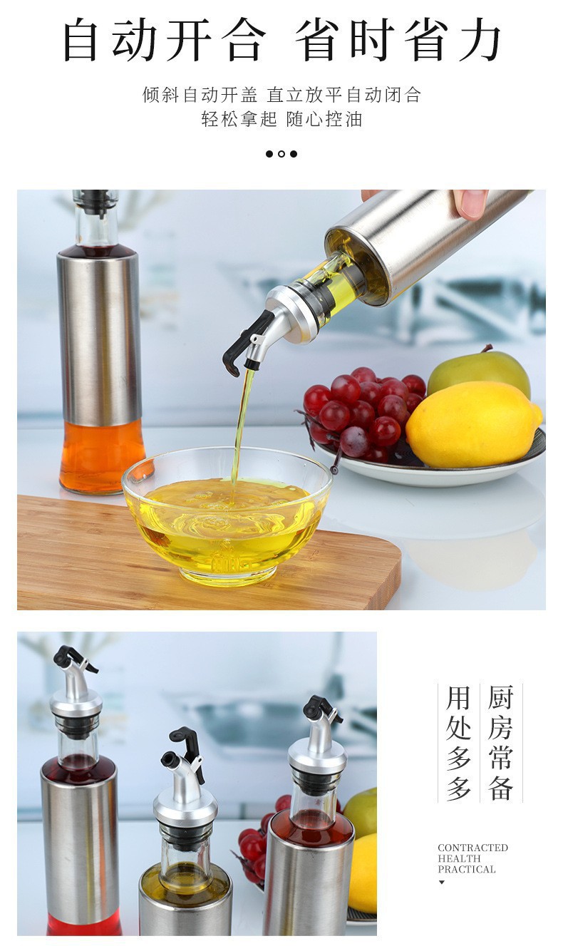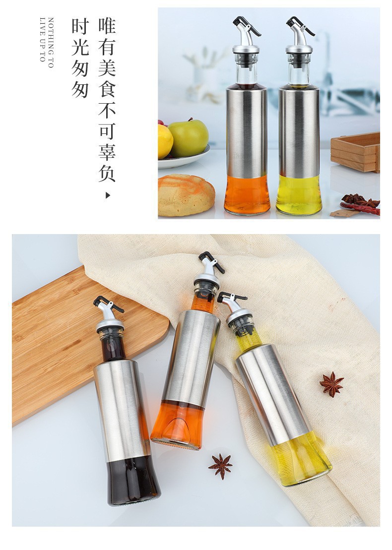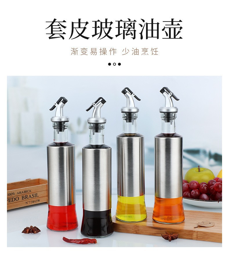 按压密封不锈钢套玻璃调料瓶大容量油瓶醋瓶酱油瓶厨房用品批发 English | 投诉