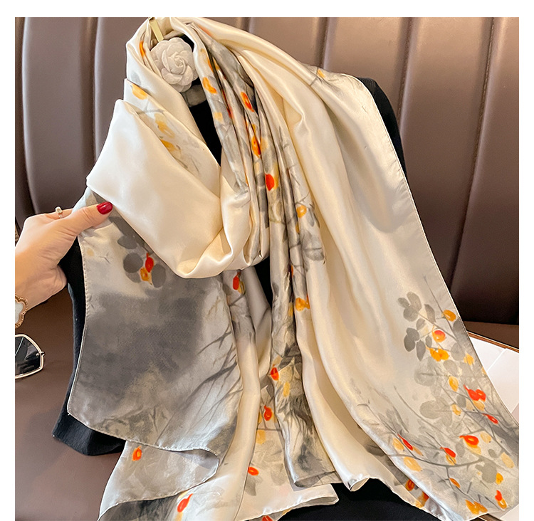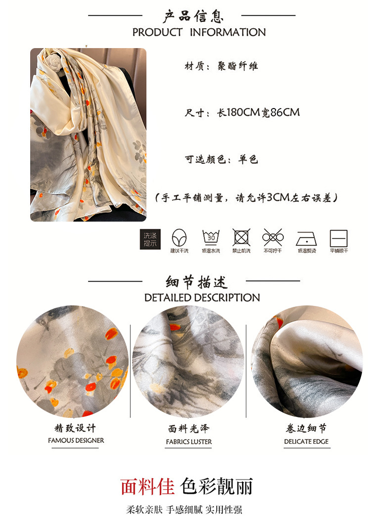 洋气披肩围巾新款印花时尚仿真丝装饰百搭防晒沙滩巾新丝缎围脖巾 English | 投诉