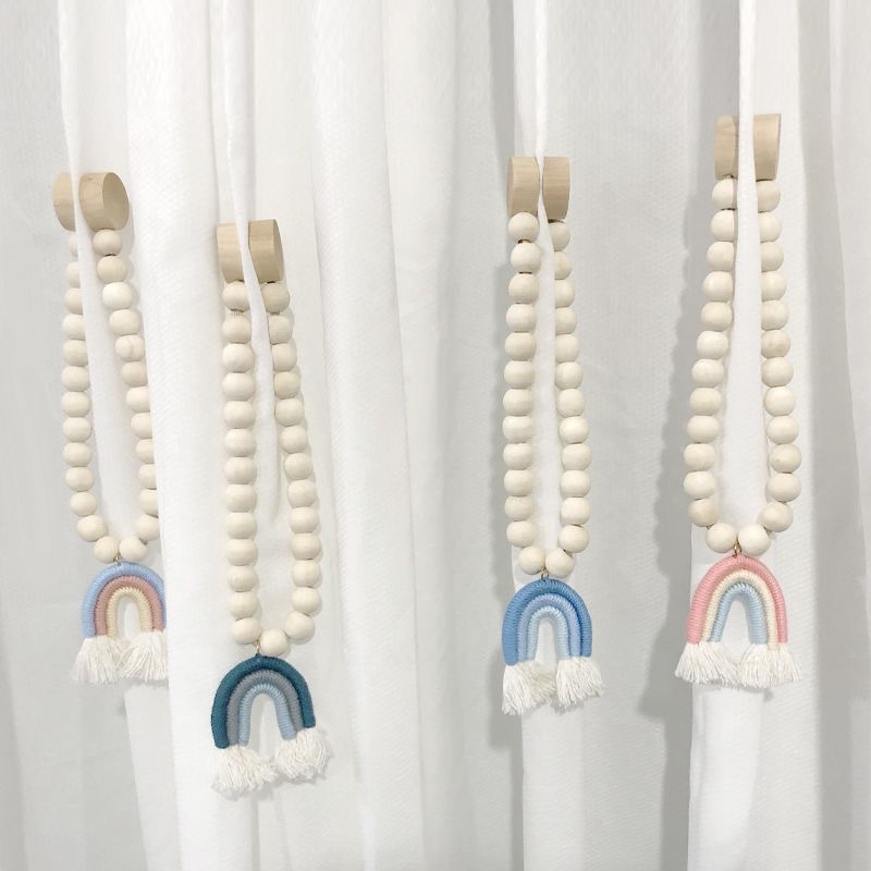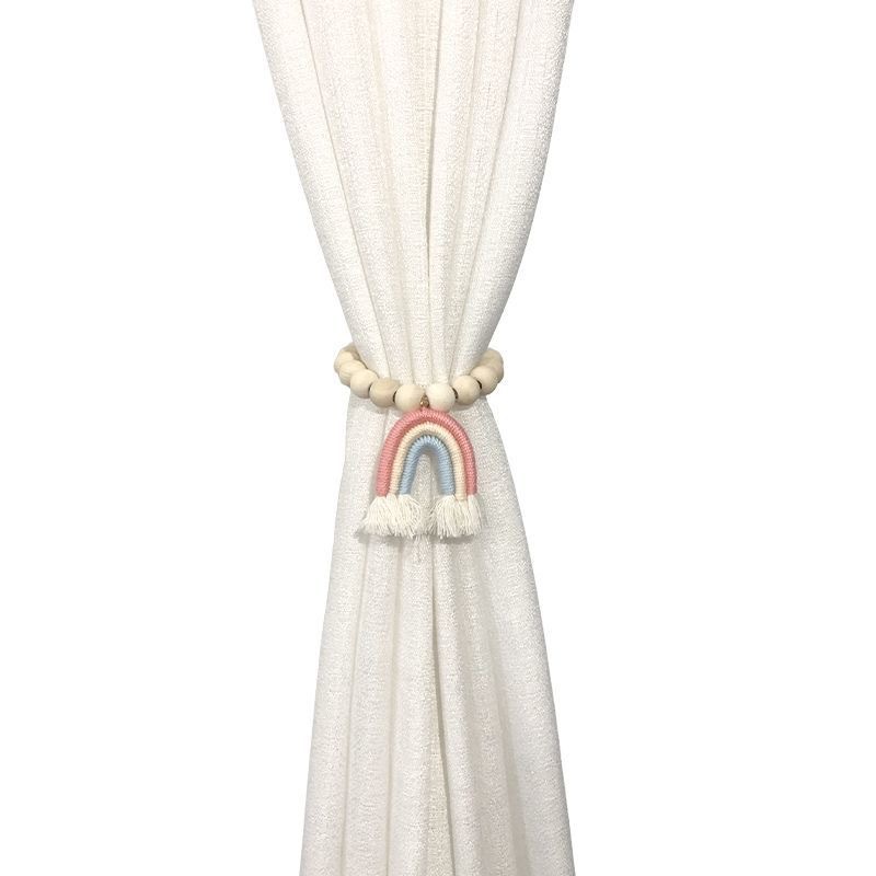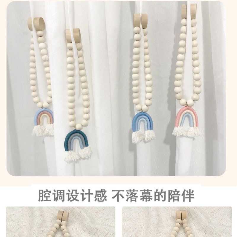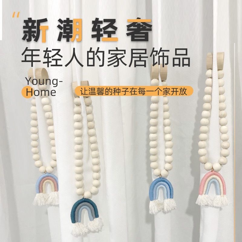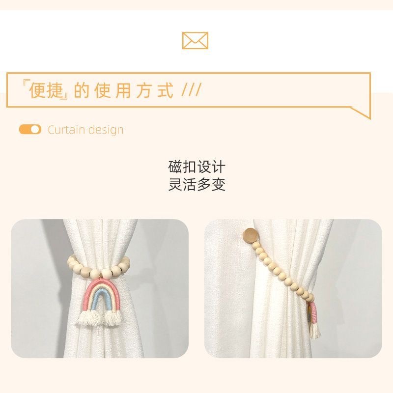 小清新风彩虹窗帘绑带木珠磁扣简约时尚新款窗帘扣绑窗帘绳免打孔