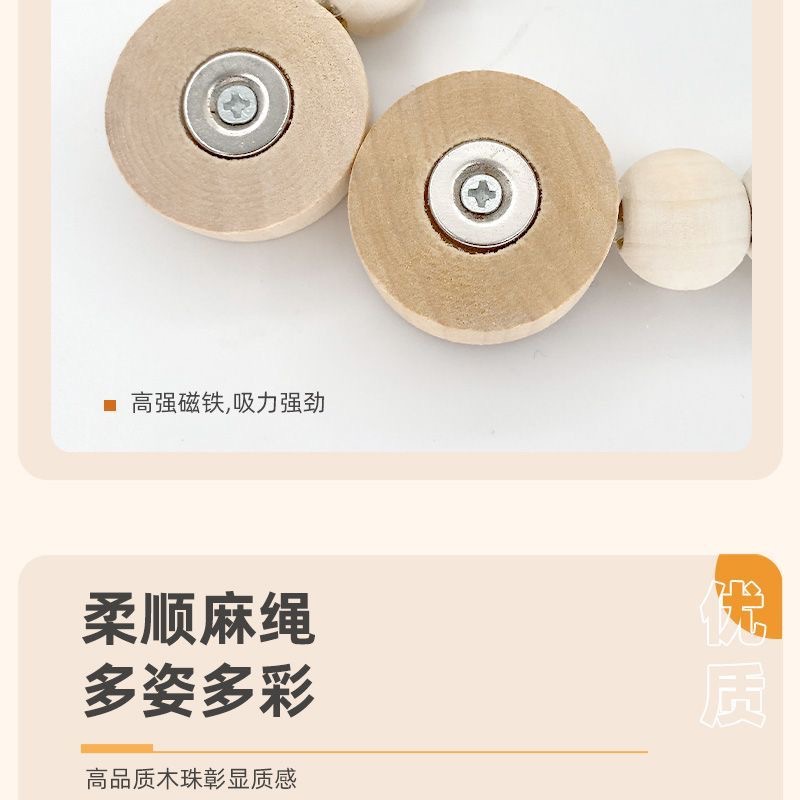 小清新风彩虹窗帘绑带木珠磁扣简约时尚新款窗帘扣绑窗帘绳免打孔 投诉