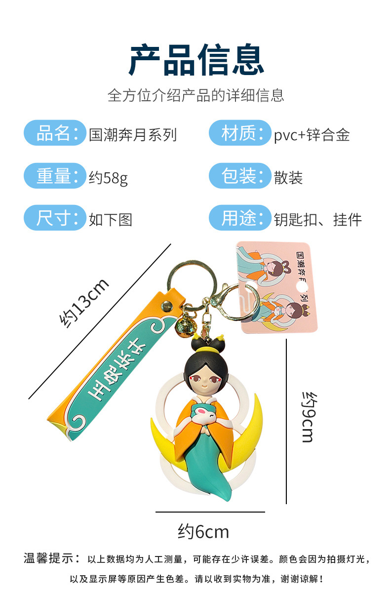 国潮嫦娥奔月系列PVC钥匙扣义乌批发小商品女生包包汽车挂件 投诉
