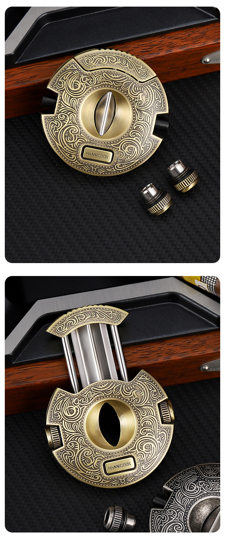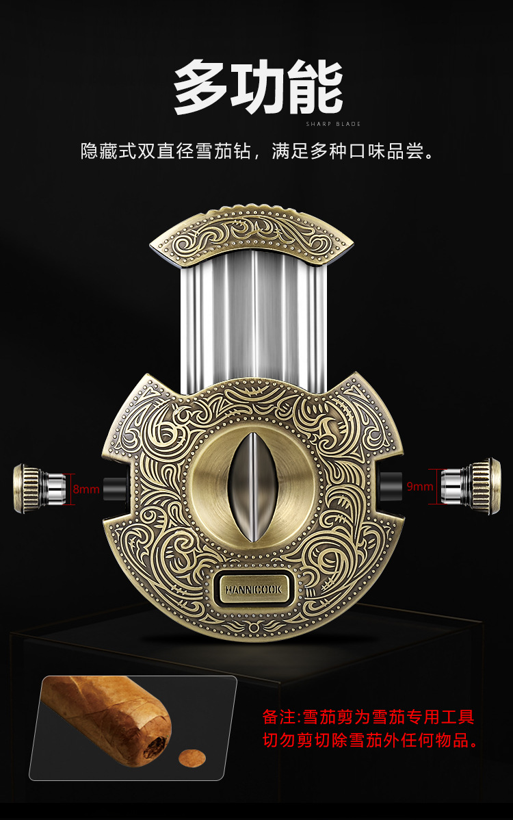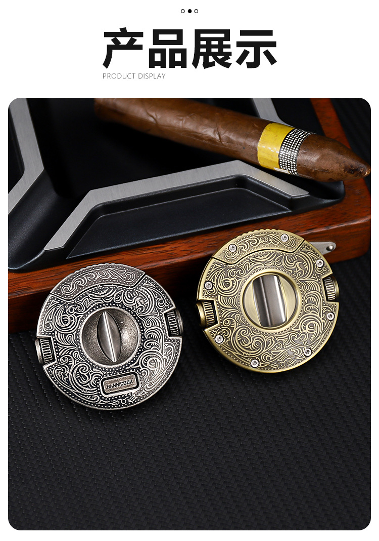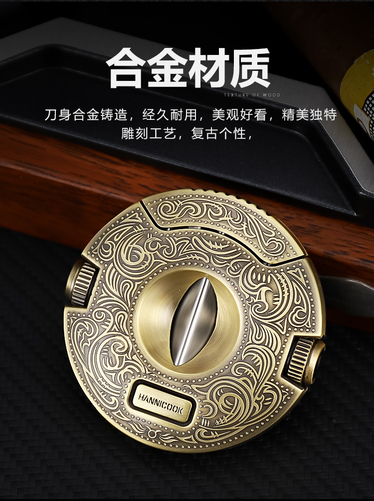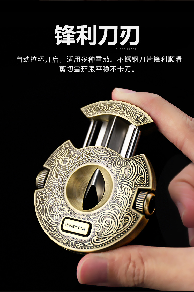 HANNICOOK雪茄剪V型不锈钢多功能半自动开合锋利雪茄刀雪茄打孔器