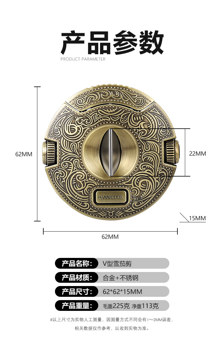 HANNICOOK雪茄剪V型不锈钢多功能半自动开合锋利雪茄刀雪茄打孔器 投诉
