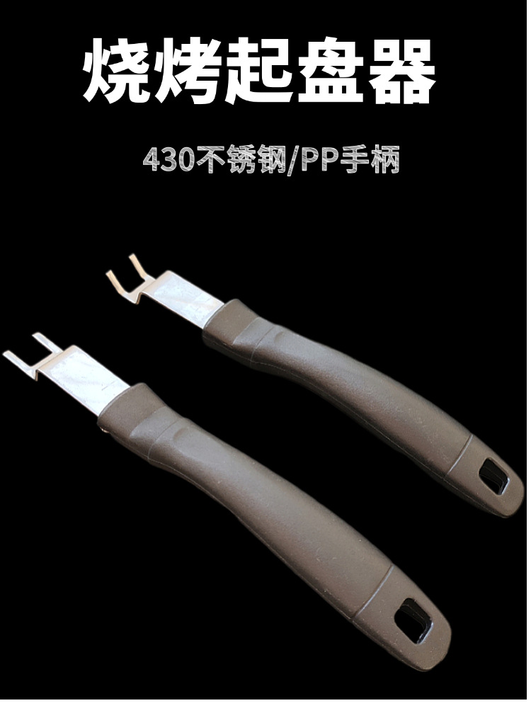 户外烧烤撬棍塑料手柄叉子现货批发烧烤炉配件430不锈钢起盘器