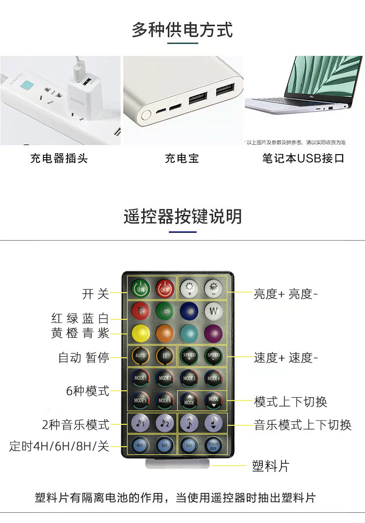 蓝牙+遥控器灯串包装规格: