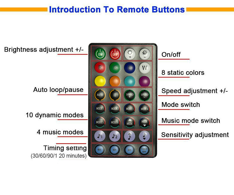 可任意调节颜色,多种控制模式,音乐声控功能,DIY/定时等等,是一款多元化的产品!