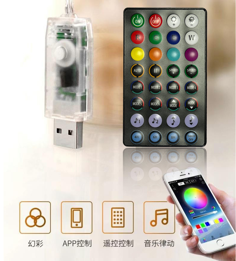 产品内容:灯串+APP控制器+说明书+遥控器+包装