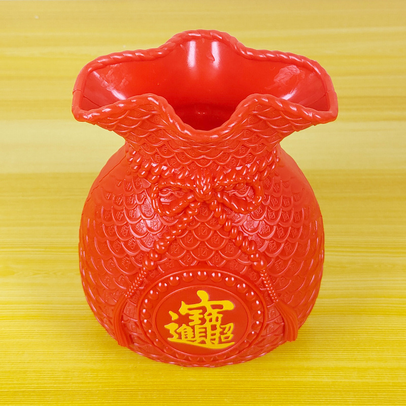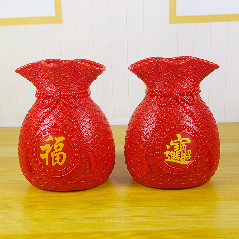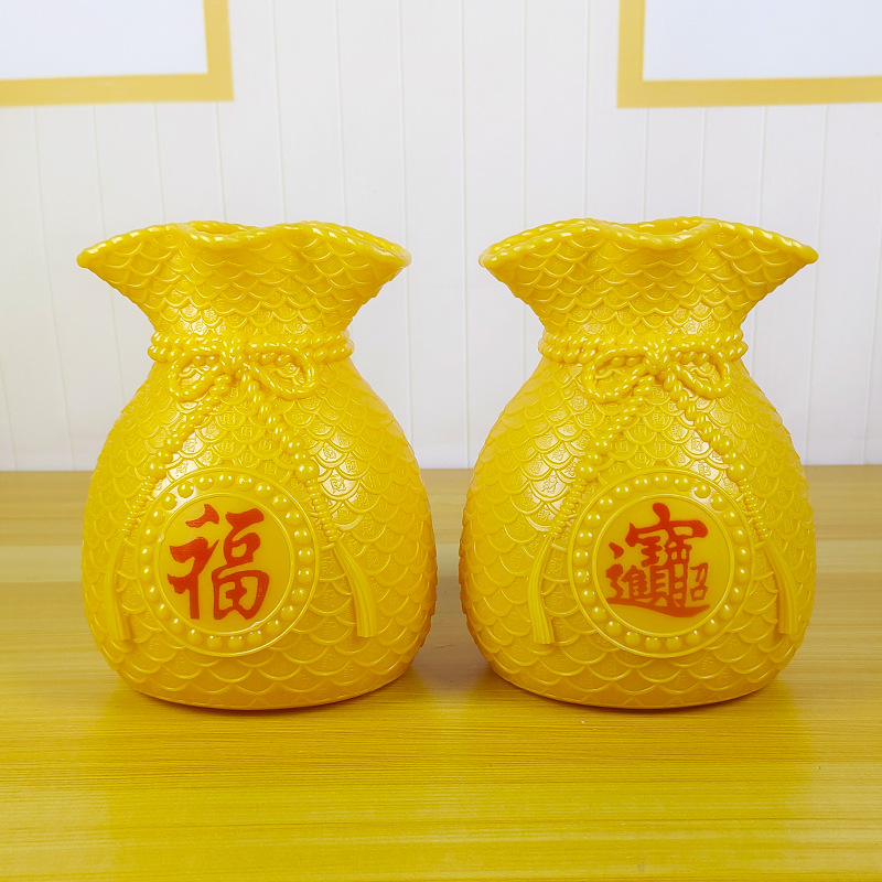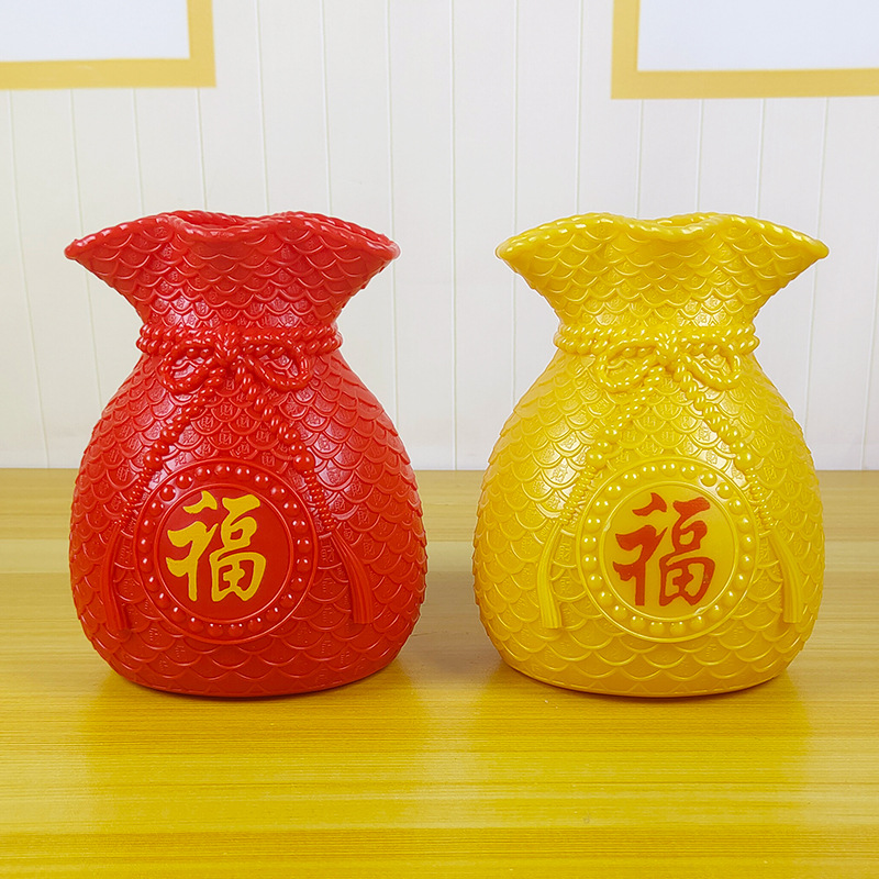 花瓶两面,一面福字,一面zhao财进宝