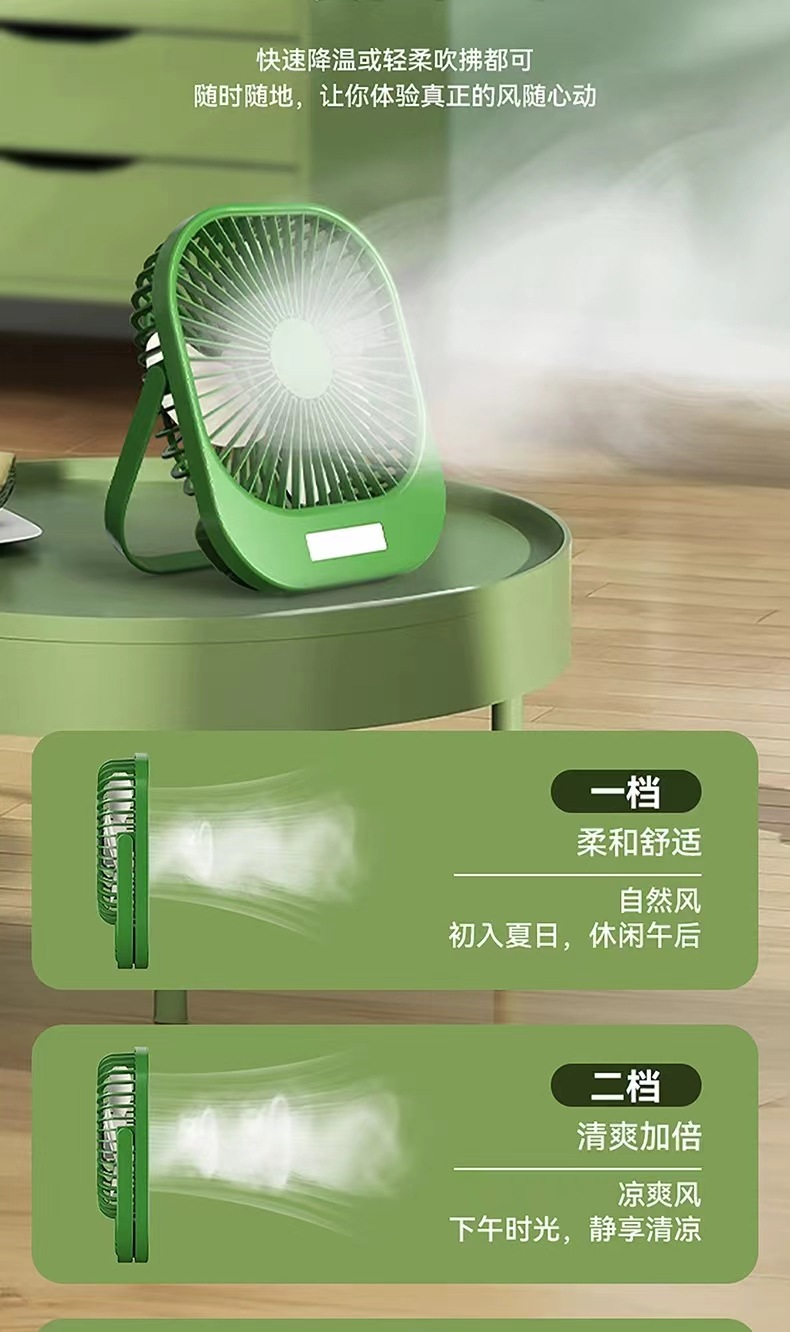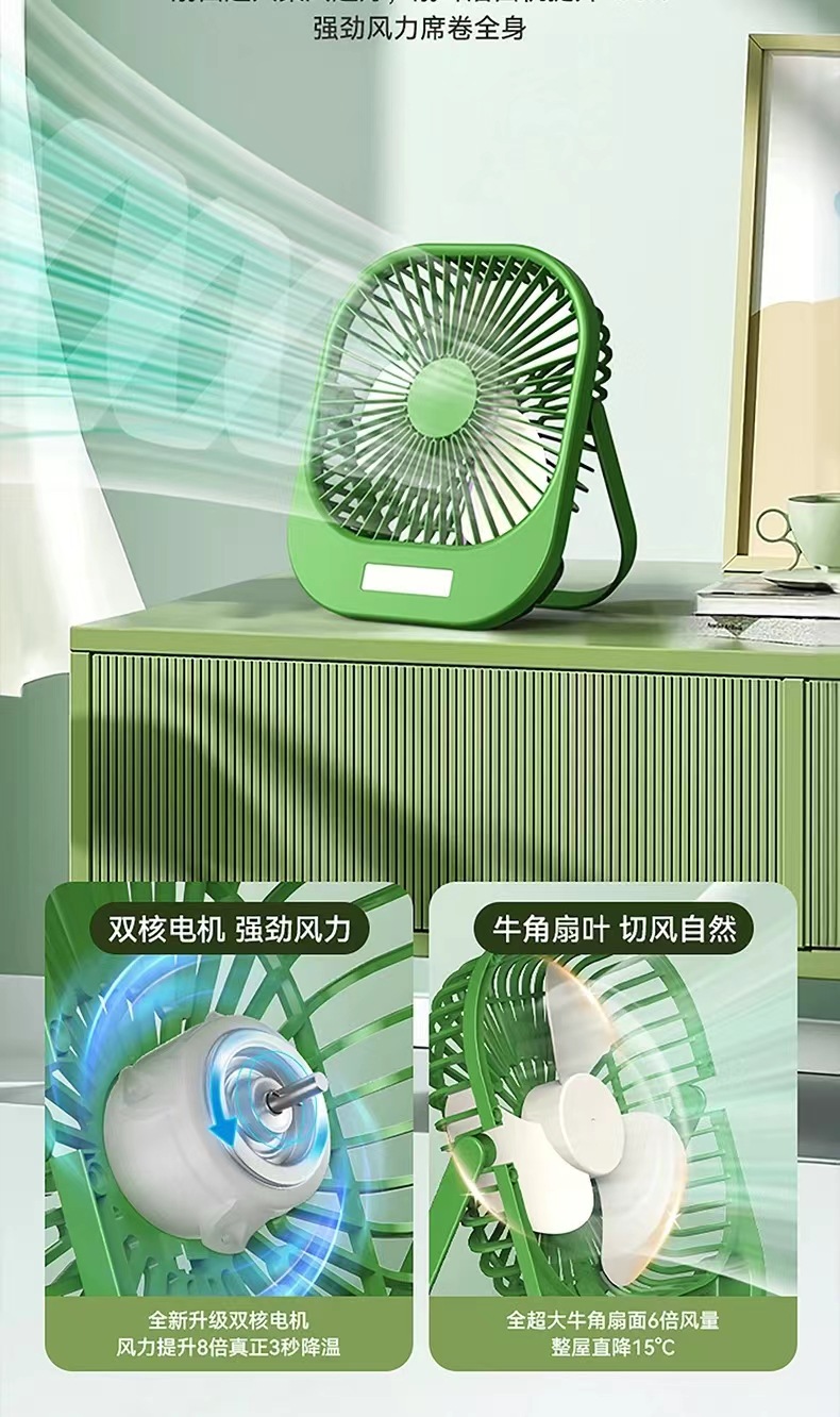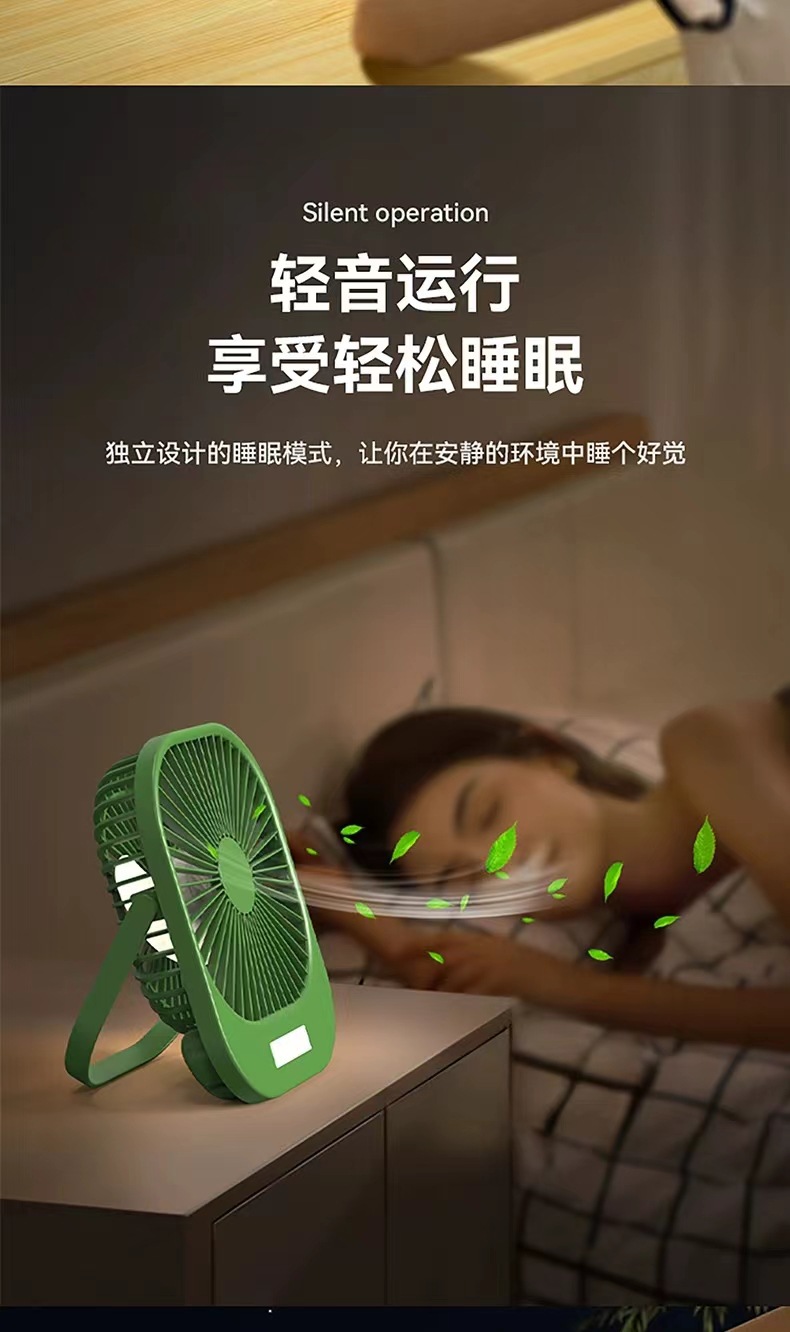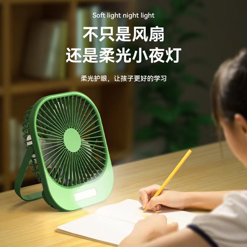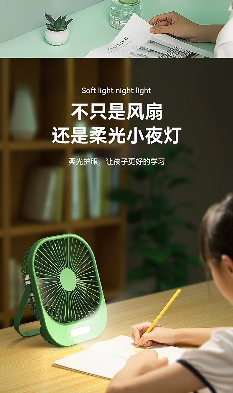 2024新款桌面风扇带夜灯 USB充电悬挂露营风扇迷你便携手持小风扇