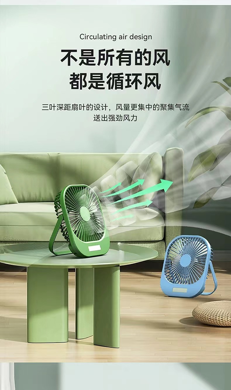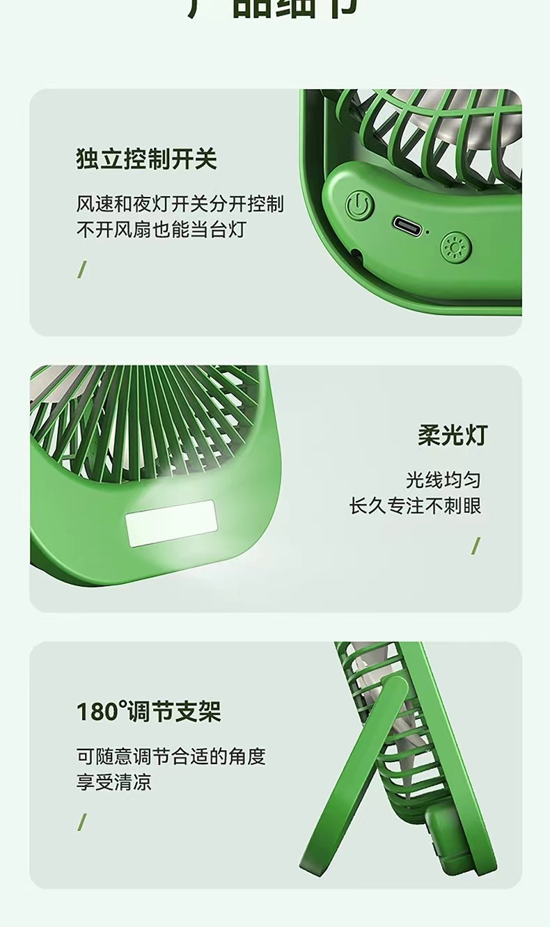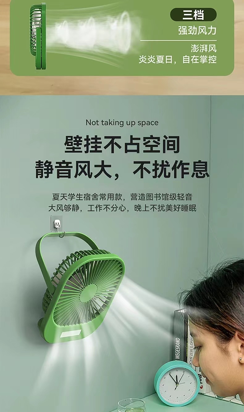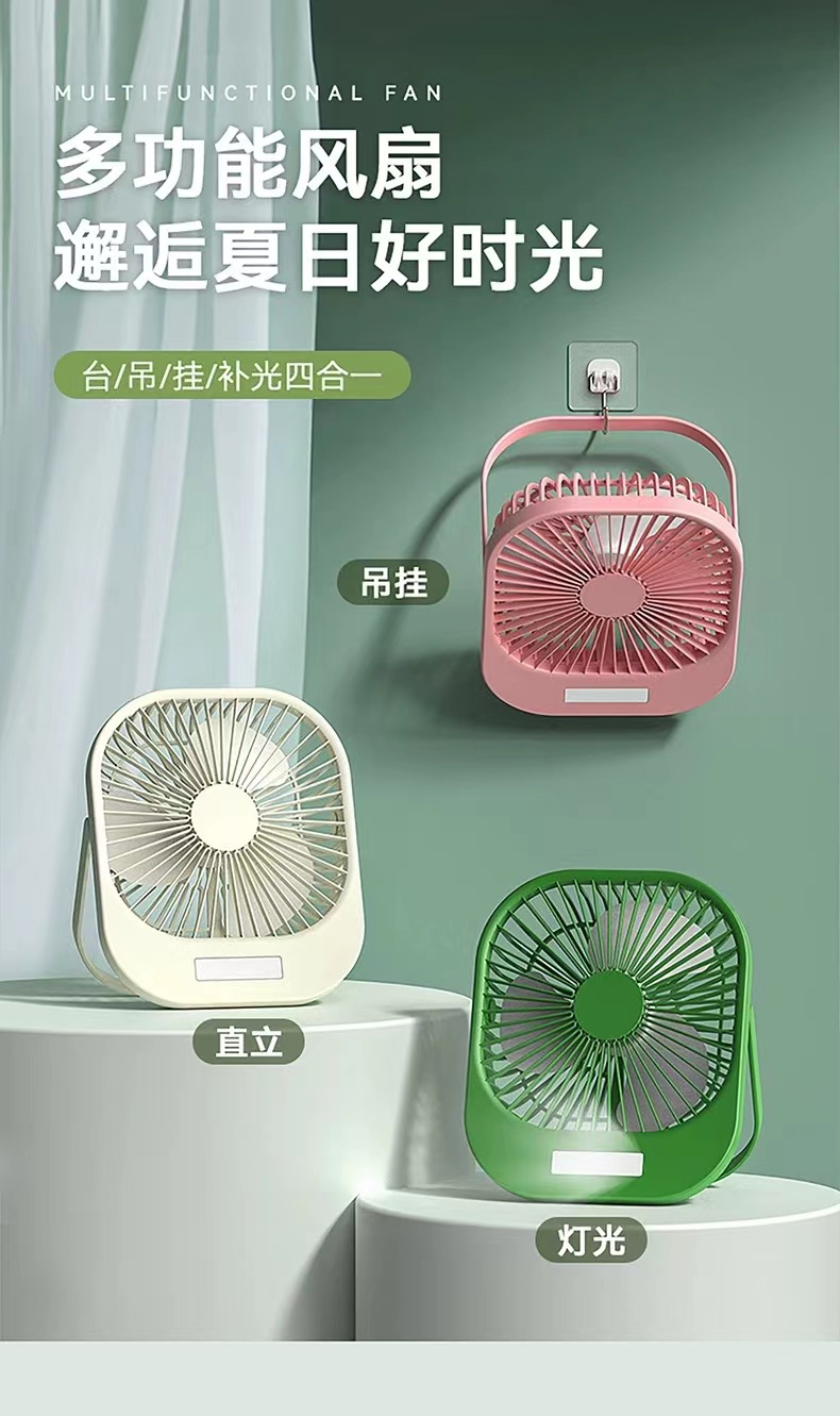 2024新款桌面风扇带夜灯 USB充电悬挂露营风扇迷你便携手持小风扇
