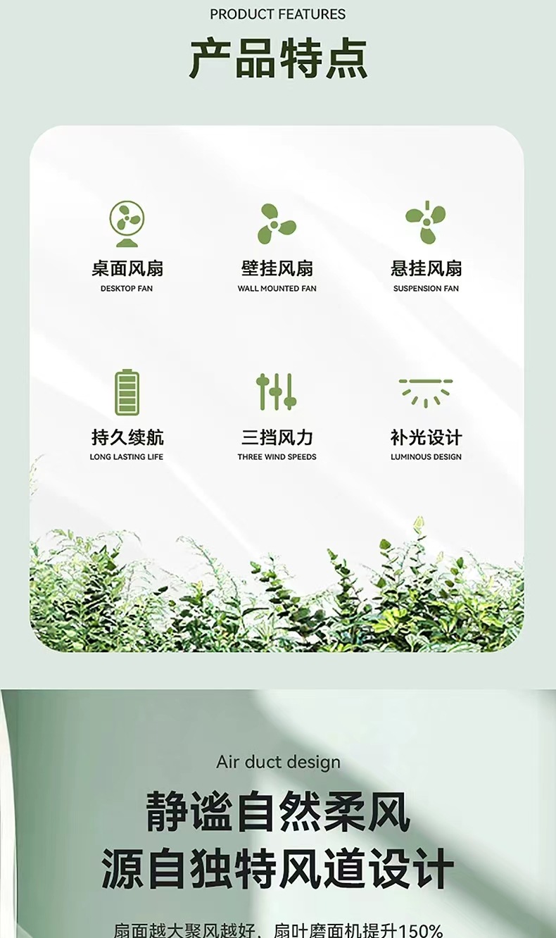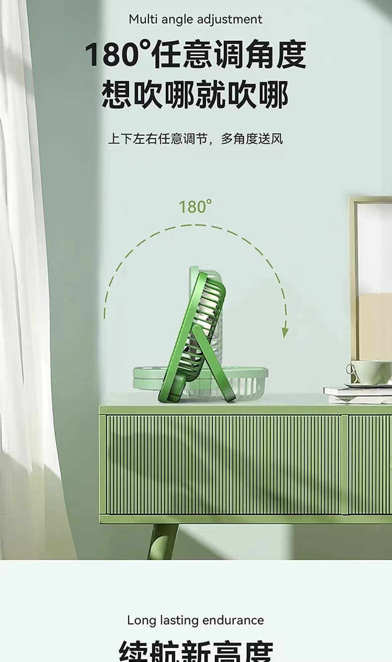 2024新款桌面风扇带夜灯 USB充电悬挂露营风扇迷你便携手持小风扇 English | 投诉
