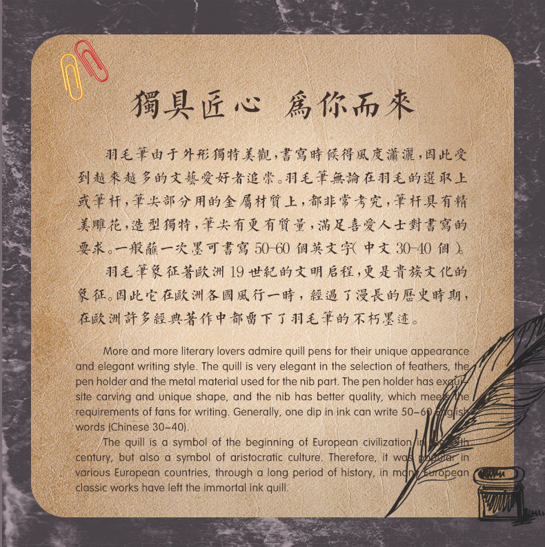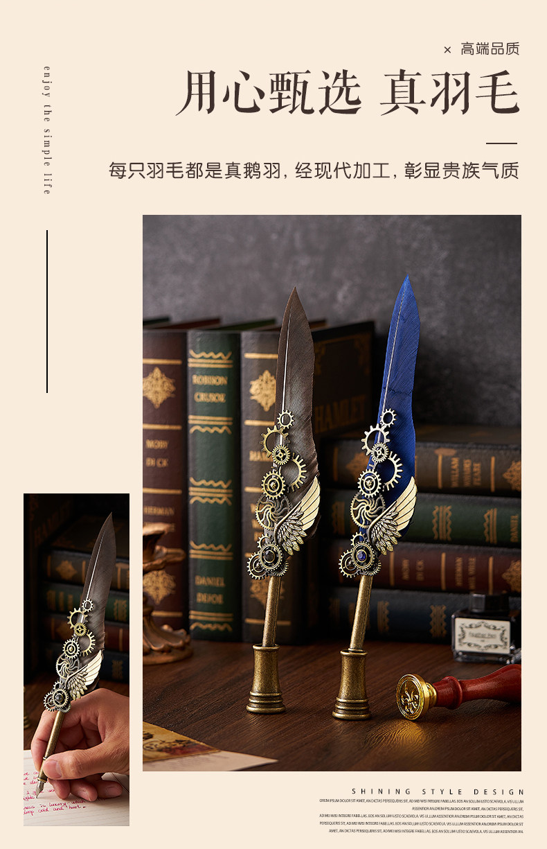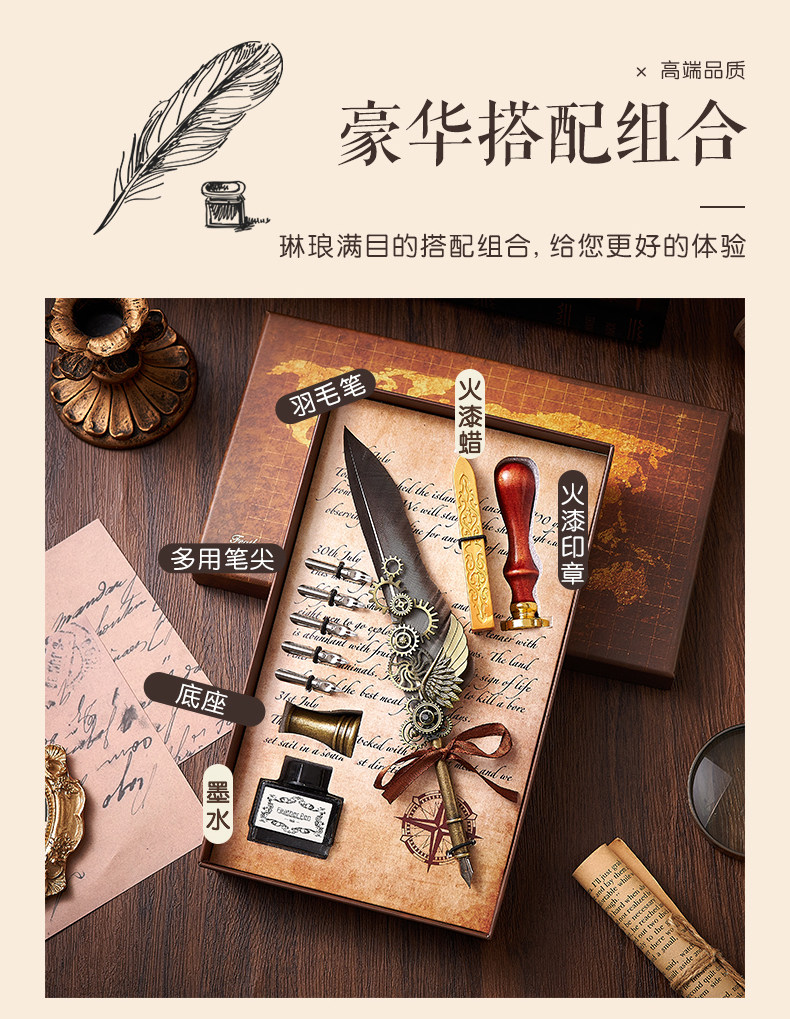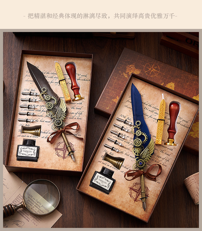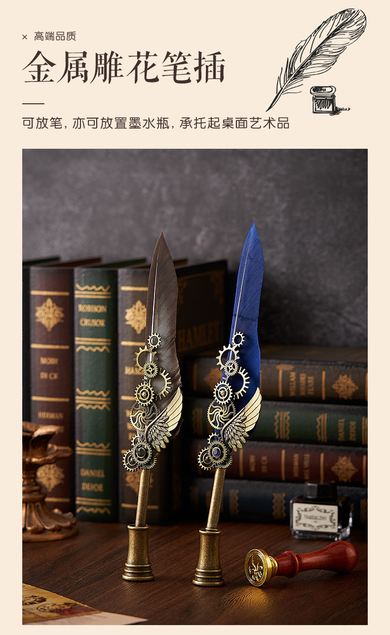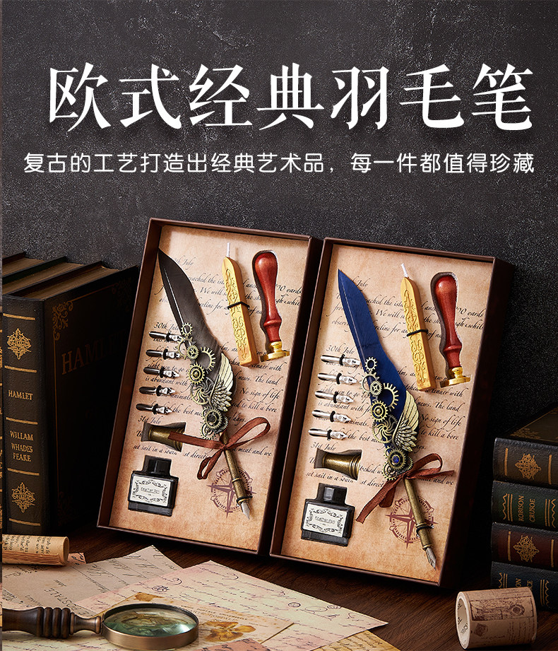 多伶文化制笔厂创始于:1998年,在国际商贸城三区市场设有实体店,可开增值税发票,专票, 专业生产:欧式复古羽毛笔,创意文具礼品套装..... 款式齐全,价格优势,专业供货:外贸公司,国外跨境,国内外商超实体店,常年500多款现货 实力供应!所有产品可根据客户需求定制生产,可定制不同的:图案,文字,logo 品牌 外包装 实力老工厂 , 爆款上新快, 质量有保证,量大价优,原创专利设计, 批发客户请与老板娘联系报价. 联系手机号微信同号:13616794052,真诚期待与您的合作!