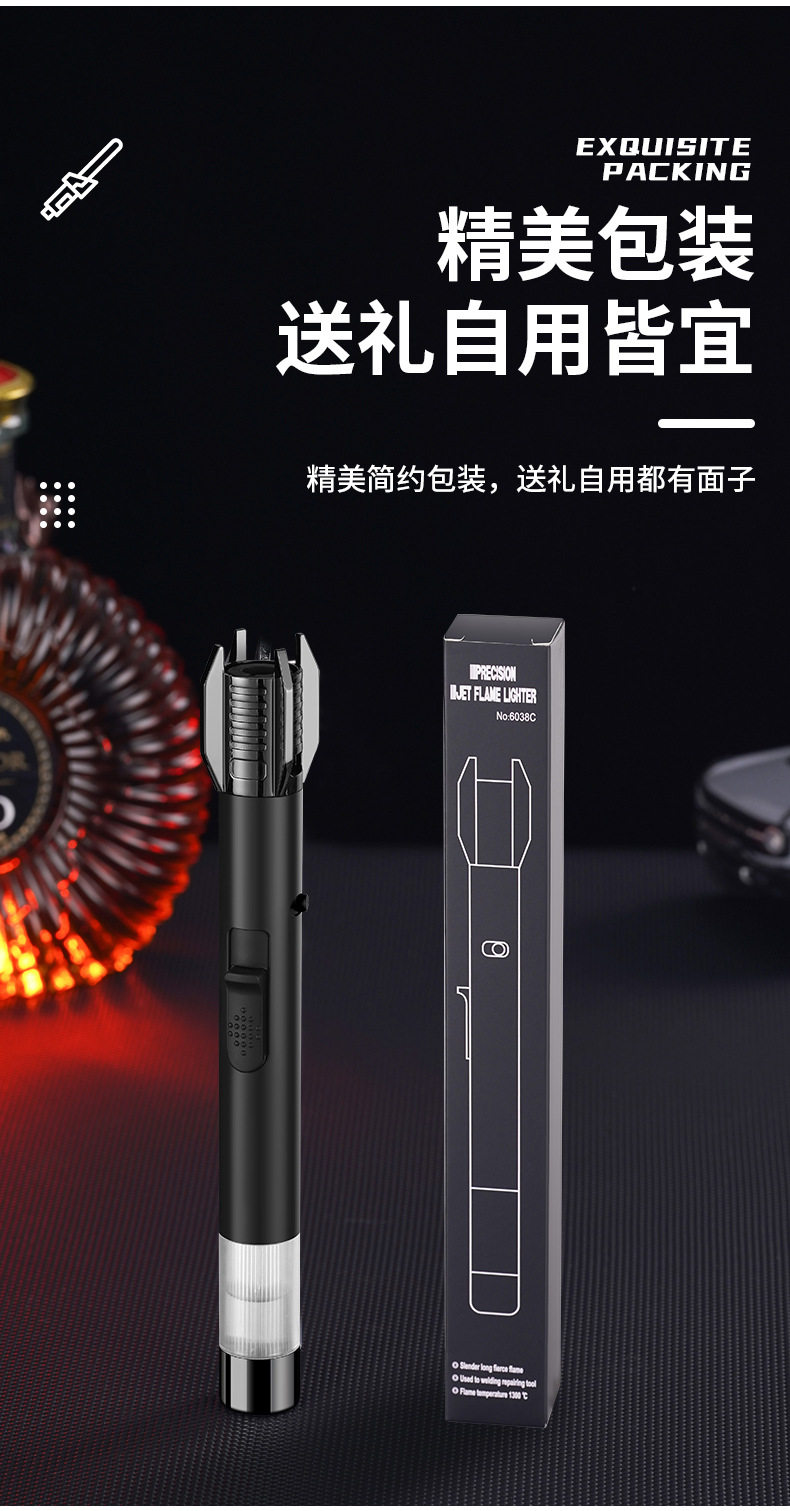 2024新款黑武士光剑高温直冲蓝焰喷火枪充气打火机户外烧烤