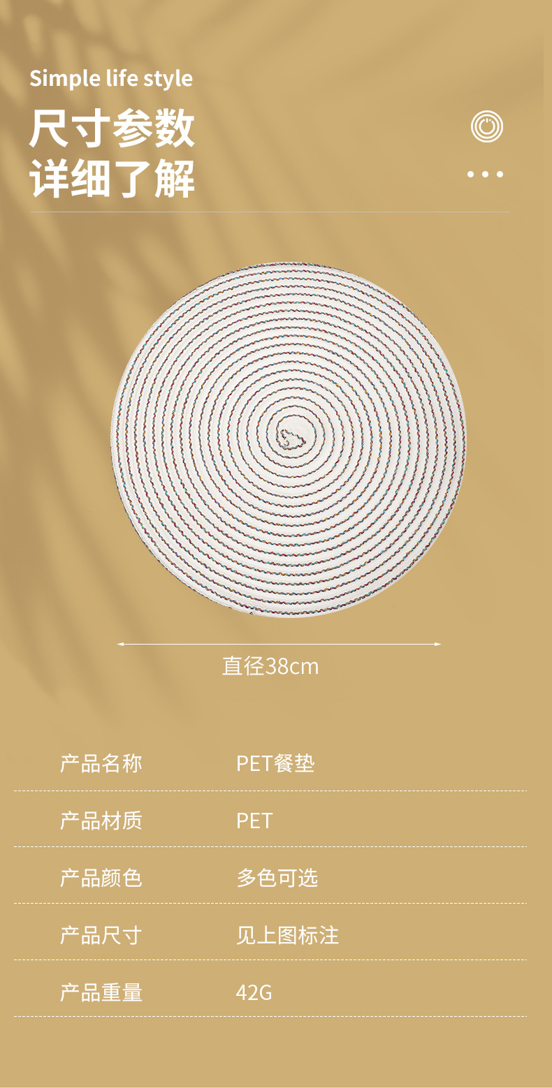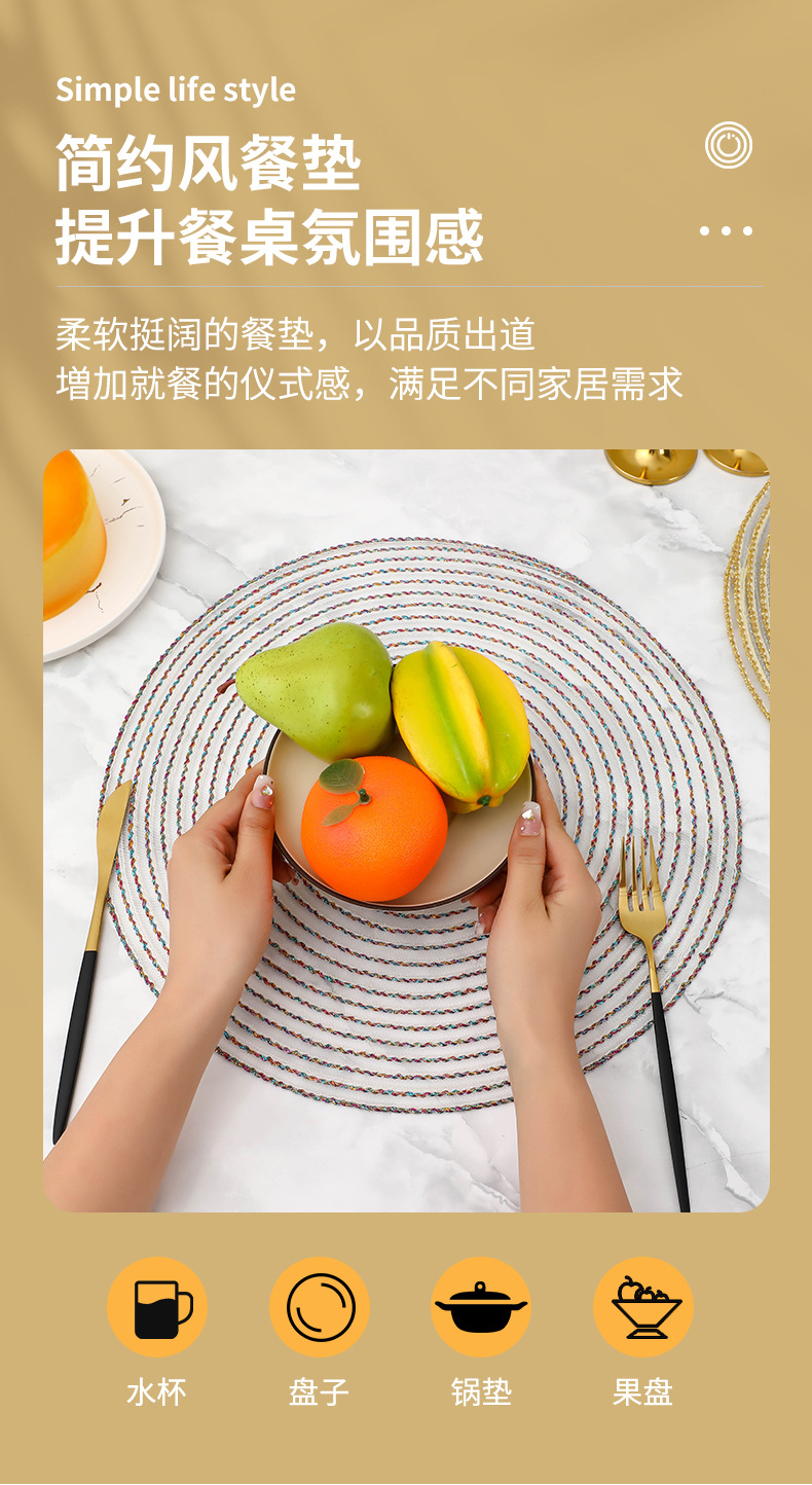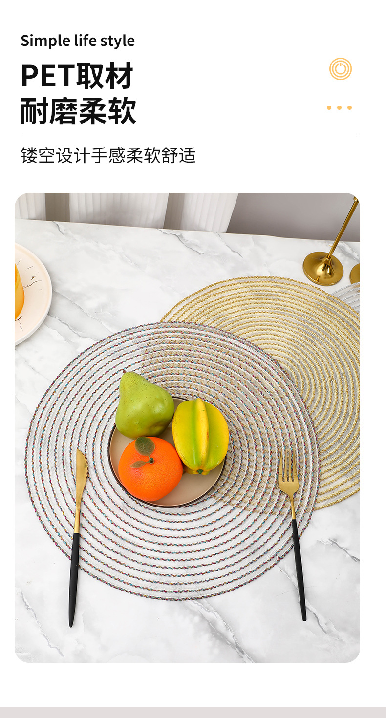 餐垫现代简约欧式圆形编织西餐隔热餐桌防烫餐盘碗垫跨境专供 English | 投诉