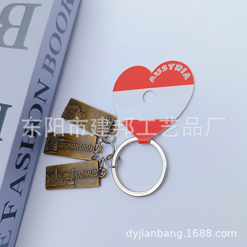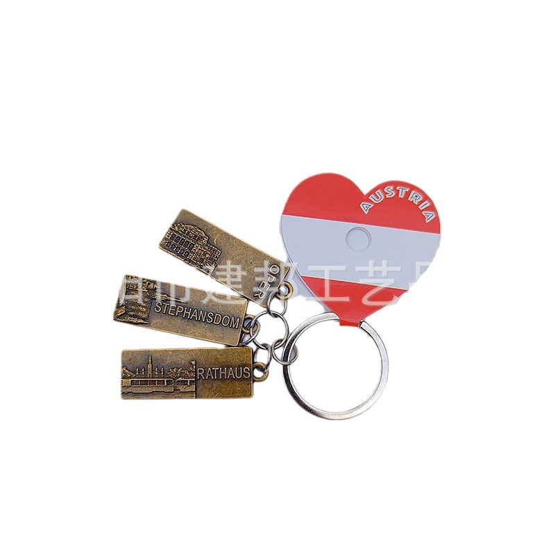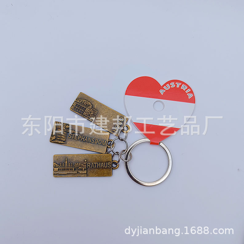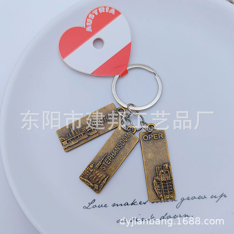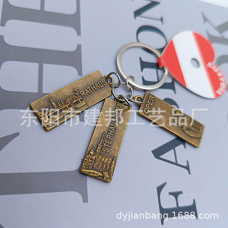 金属钥匙扣旅游纪念品百搭三个小吊牌挂件复古做旧风锌合金钥匙扣