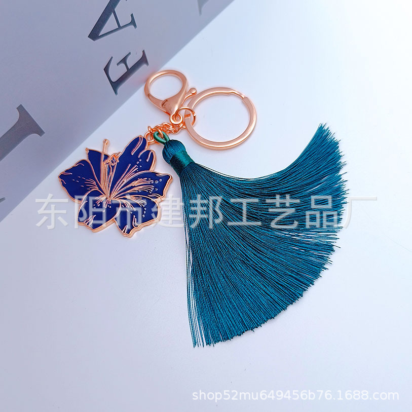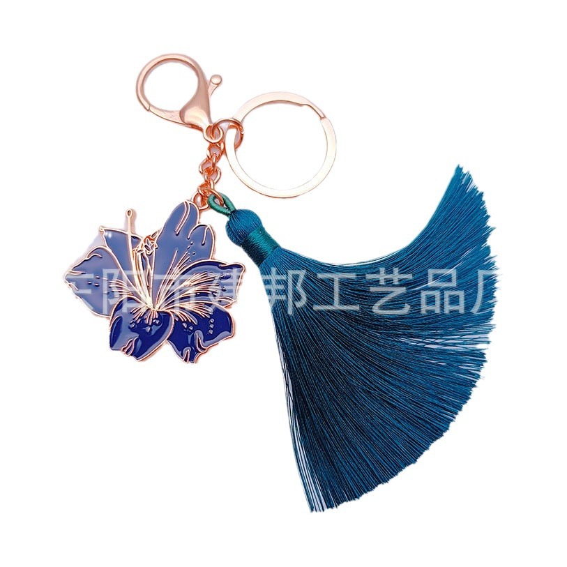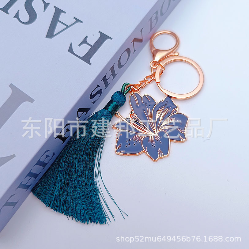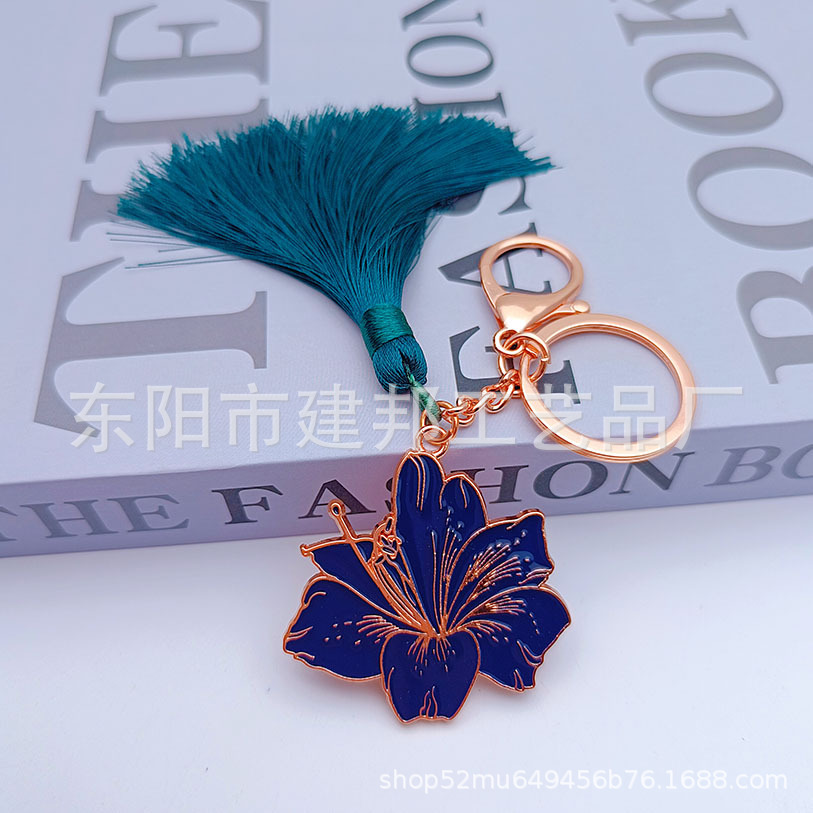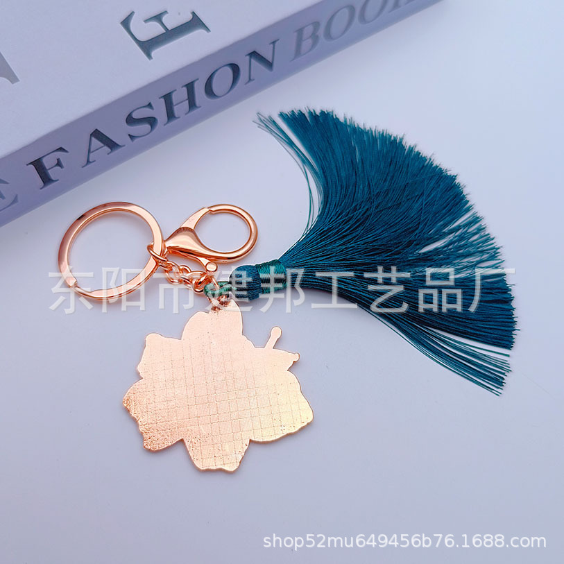 厂家定制旅游纪念品玫瑰金花朵绿色流苏百搭挂件锌合金钥匙扣