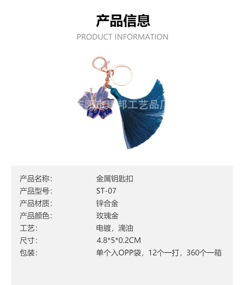 厂家定制旅游纪念品玫瑰金花朵绿色流苏百搭挂件锌合金钥匙扣 投诉
