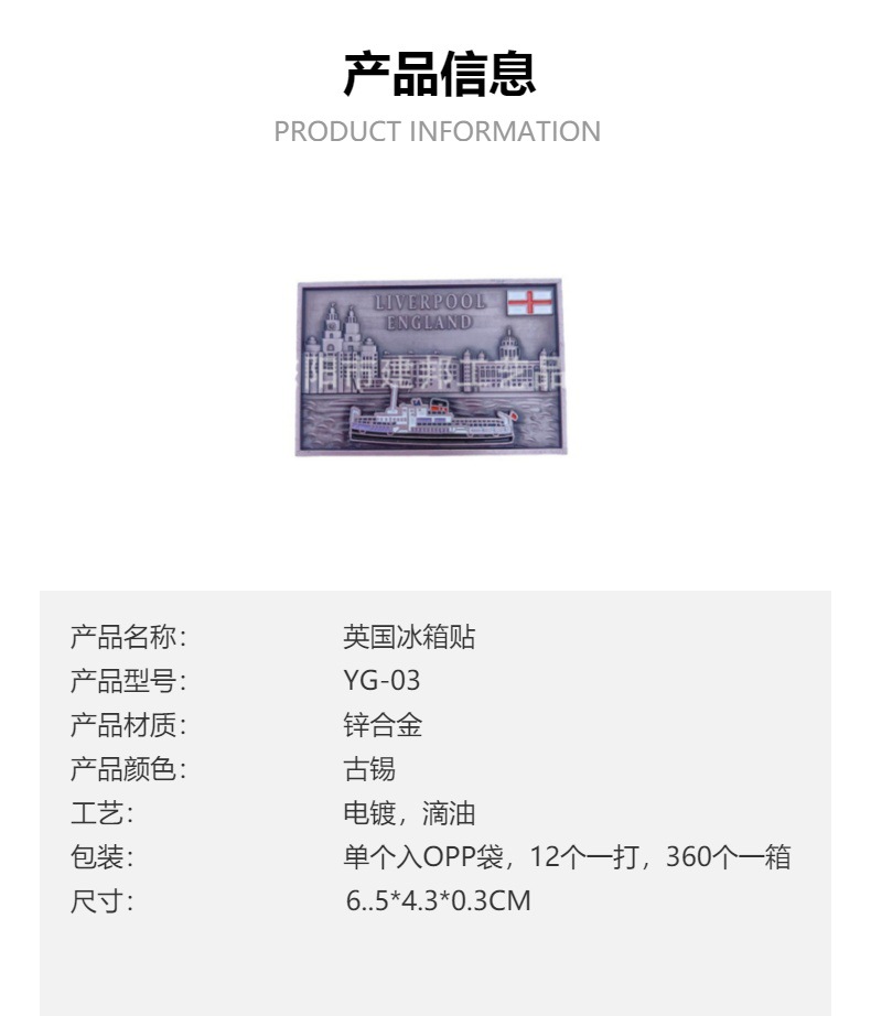 厂家定制英国伦敦苏格兰创意帆船旅游纪念品锌合金冰箱贴 投诉