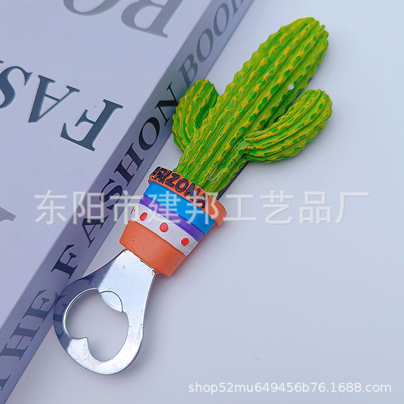 厂家定制新颖美国亚利桑那州纽约立体仙人掌盆栽树脂锌合金开瓶器