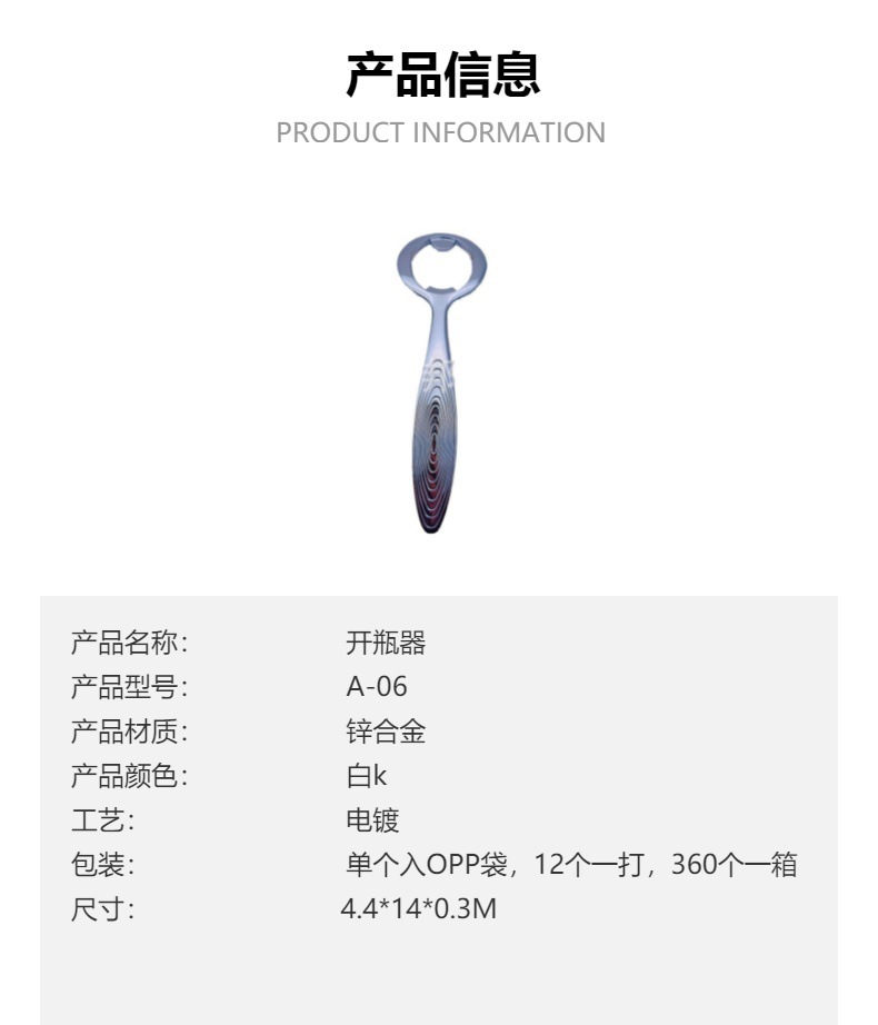 厂家定制新设计家用商用送礼光滑手柄电镀白k锌合金开瓶器 投诉