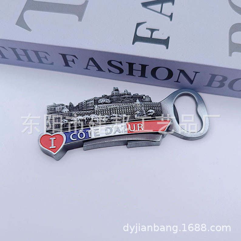 厂家定制法国蔚蓝海岸巴黎凯旋门埃菲尔铁塔锌合金冰箱贴开瓶器