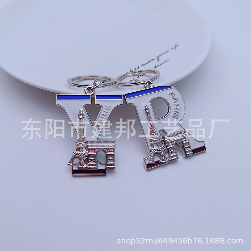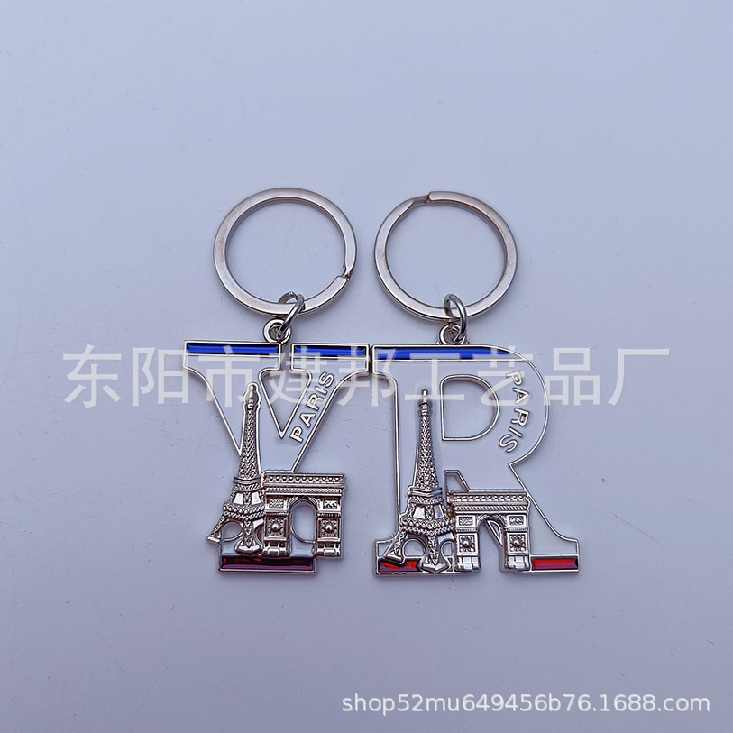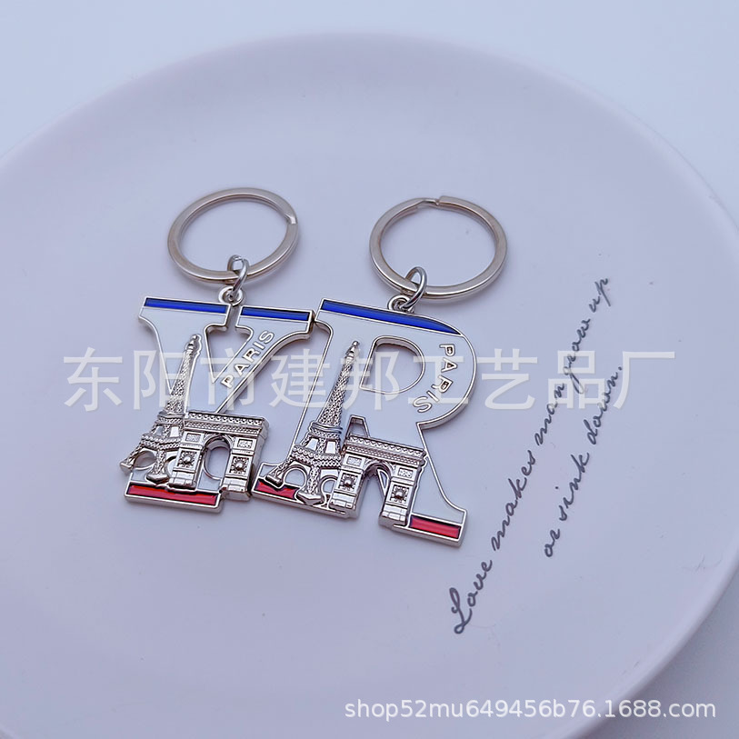 欧洲旅游纪念品法国巴黎埃菲尔铁塔凯旋门26个字母锌合金钥匙扣