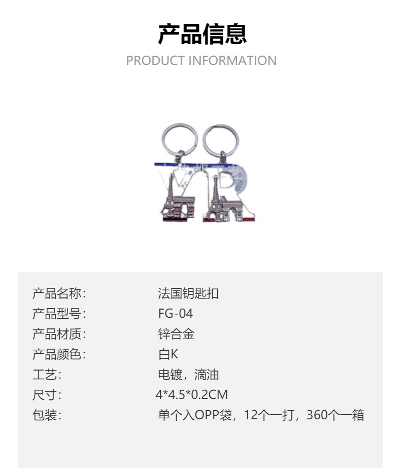 欧洲旅游纪念品法国巴黎埃菲尔铁塔凯旋门26个字母锌合金钥匙扣 投诉