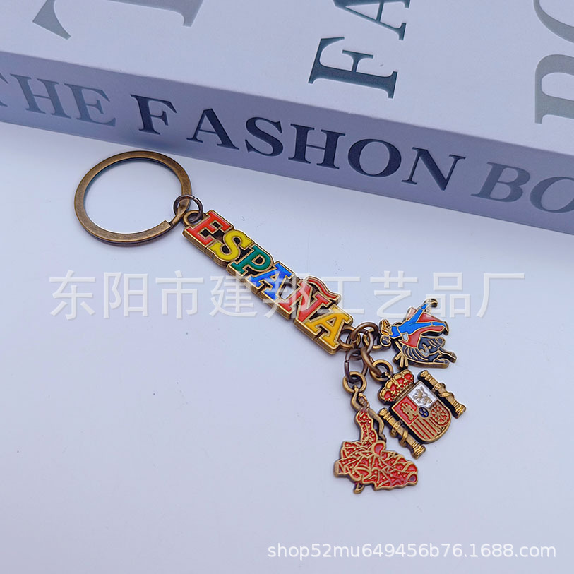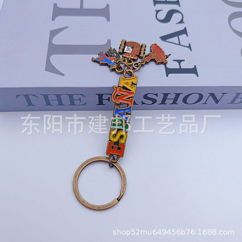 免费设计定制西班牙ESPANA巴塞罗那斗牛小配件仿金锌合金钥匙扣
