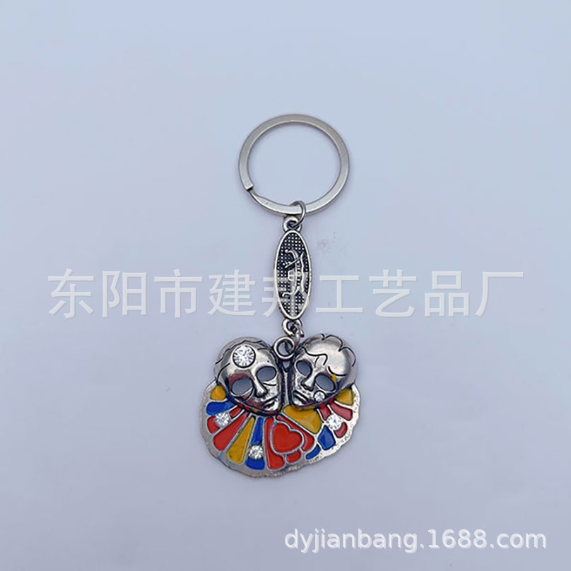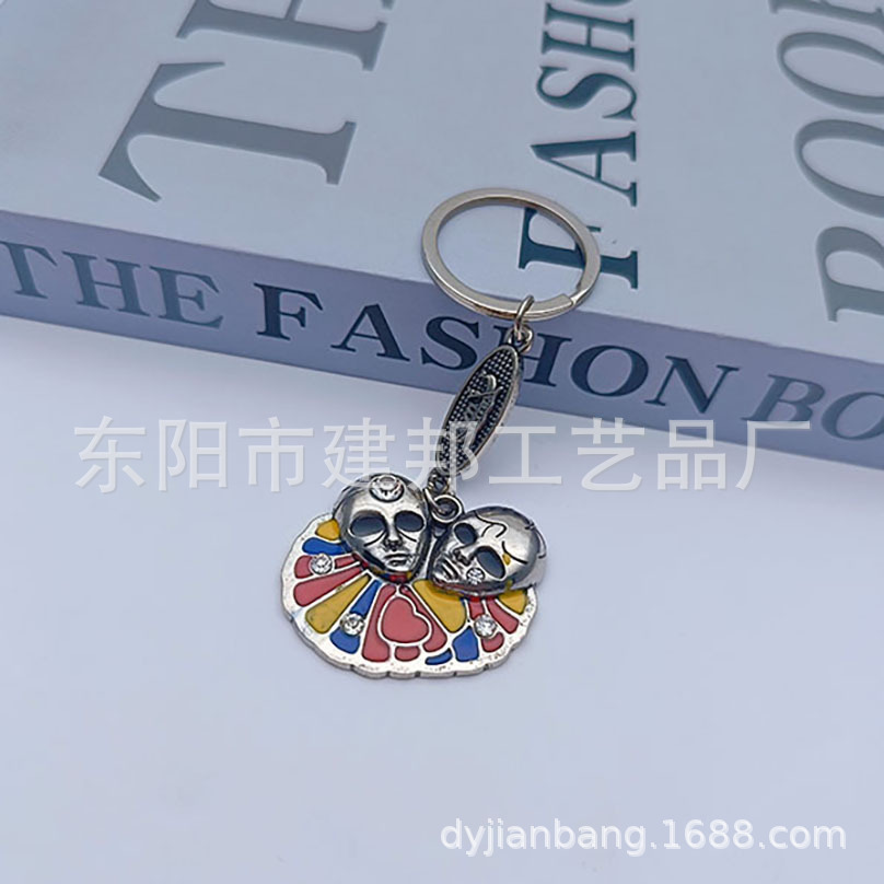 厂家定制个性金属旅游纪念品意大利带钻画油面具挂件锌合金钥匙扣