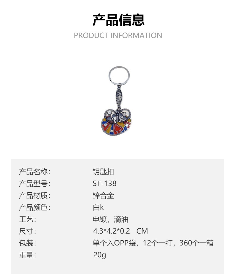 材质: 合金 货号: ST-138 是否进口: 否 合金种类: 锌合金 工艺: 电镀 加工定制: 是 品牌: 建邦 产品编号: ST-138 类别: 钥匙扣 摆挂形式: 挂饰 重量: 0.5 kg/个