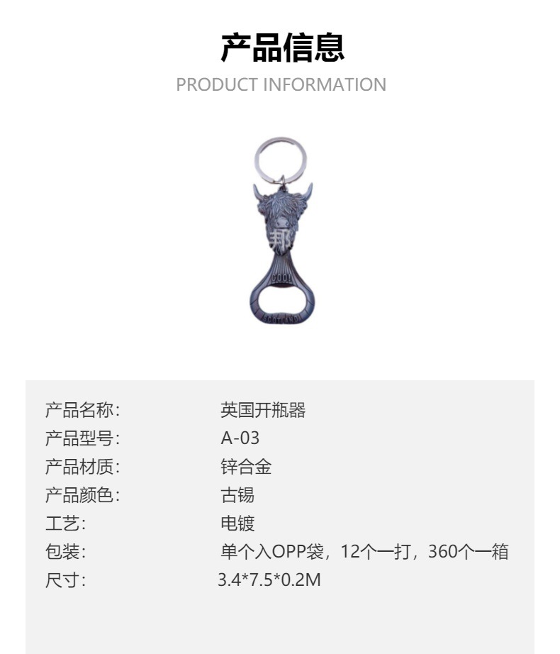 厂家定制新颖旅游纪念品英国苏格兰SCOTLAND羊COO锌合金开瓶器 投诉