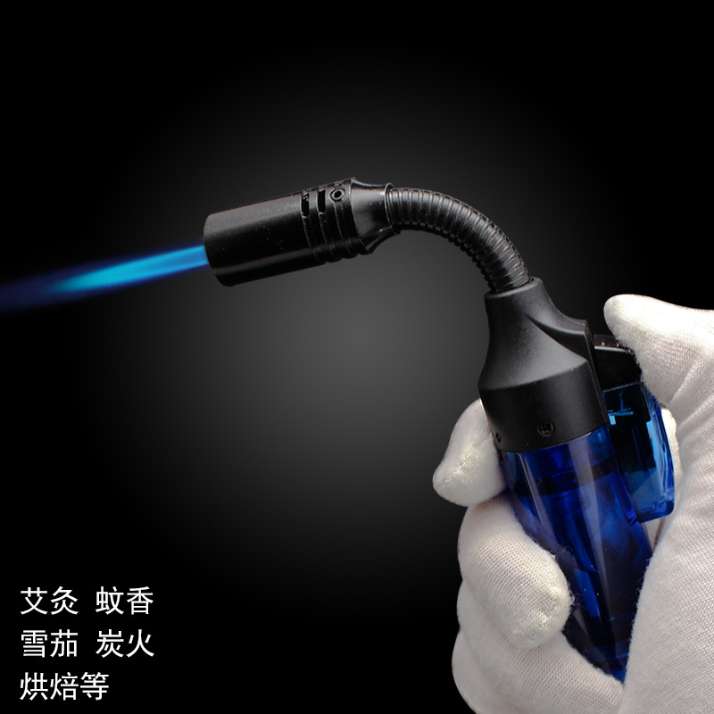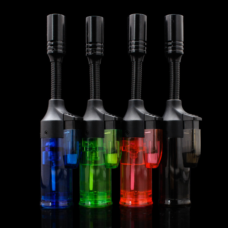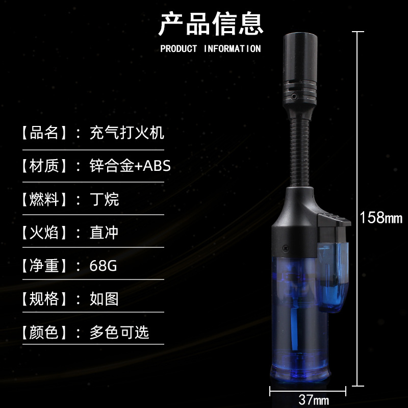 1525B充气防风打火机直冲火可锁火透明可视气体360度软管打火机