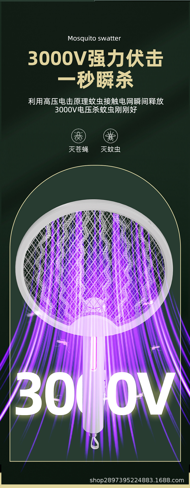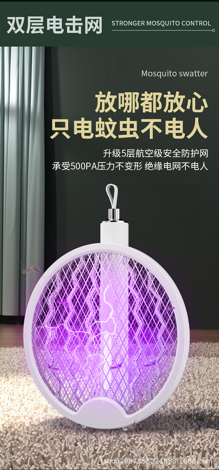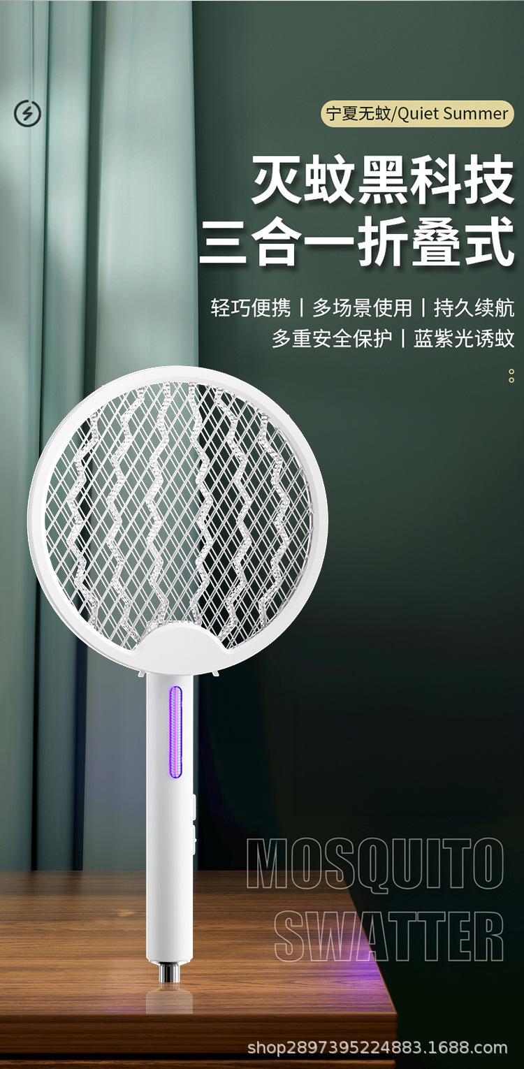 电蚊拍充电式强力家用锂电池折叠电蚊拍二合一多功能壁挂桌面可用 English | 投诉