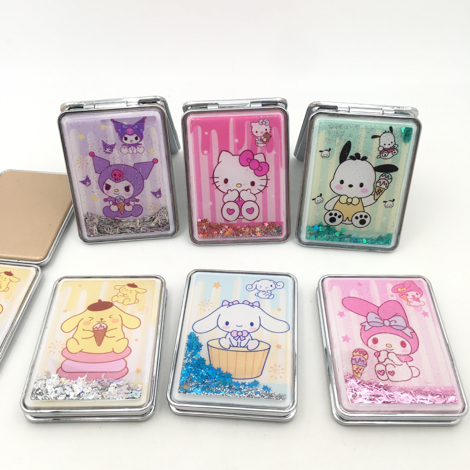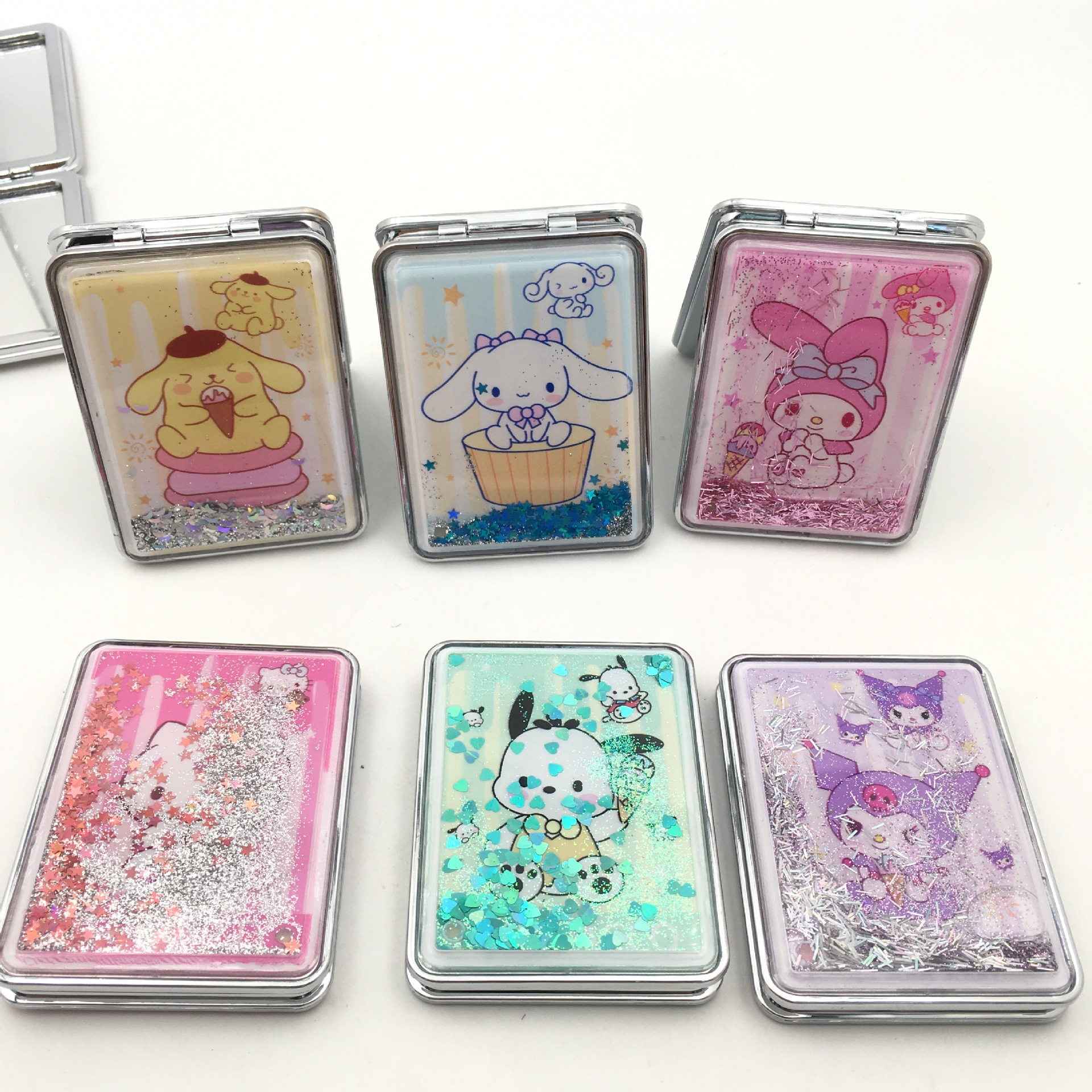三丽鸥3D流沙镜库洛米帕恰狗美乐蒂玉桂狗布丁狗双面折叠化妆镜