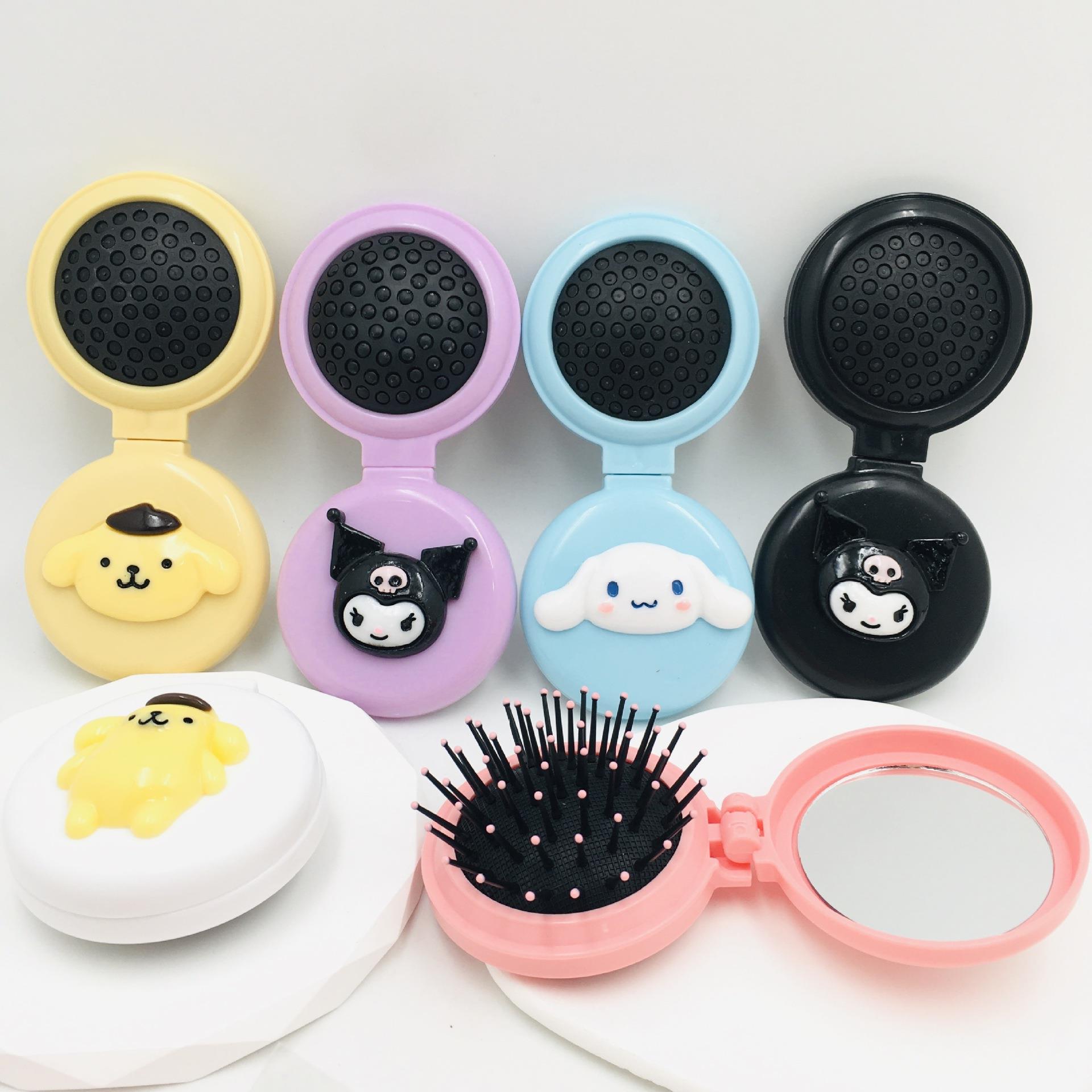 三丽鸥气囊梳带镜子库洛米美乐蒂玉桂狗布丁狗随身折叠按摩梳镜子